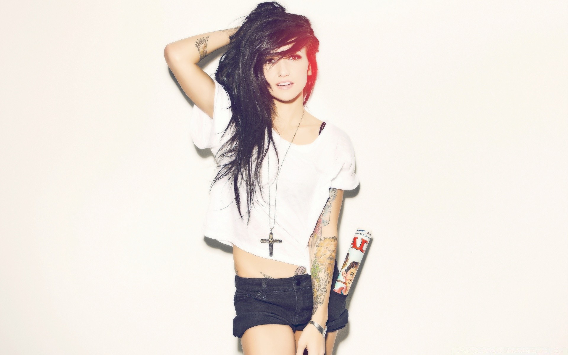 Model kız katı bej bir arka plan üzerinde poz veriyorModel kız katı bej bir arka plan üzerinde poz veriyor