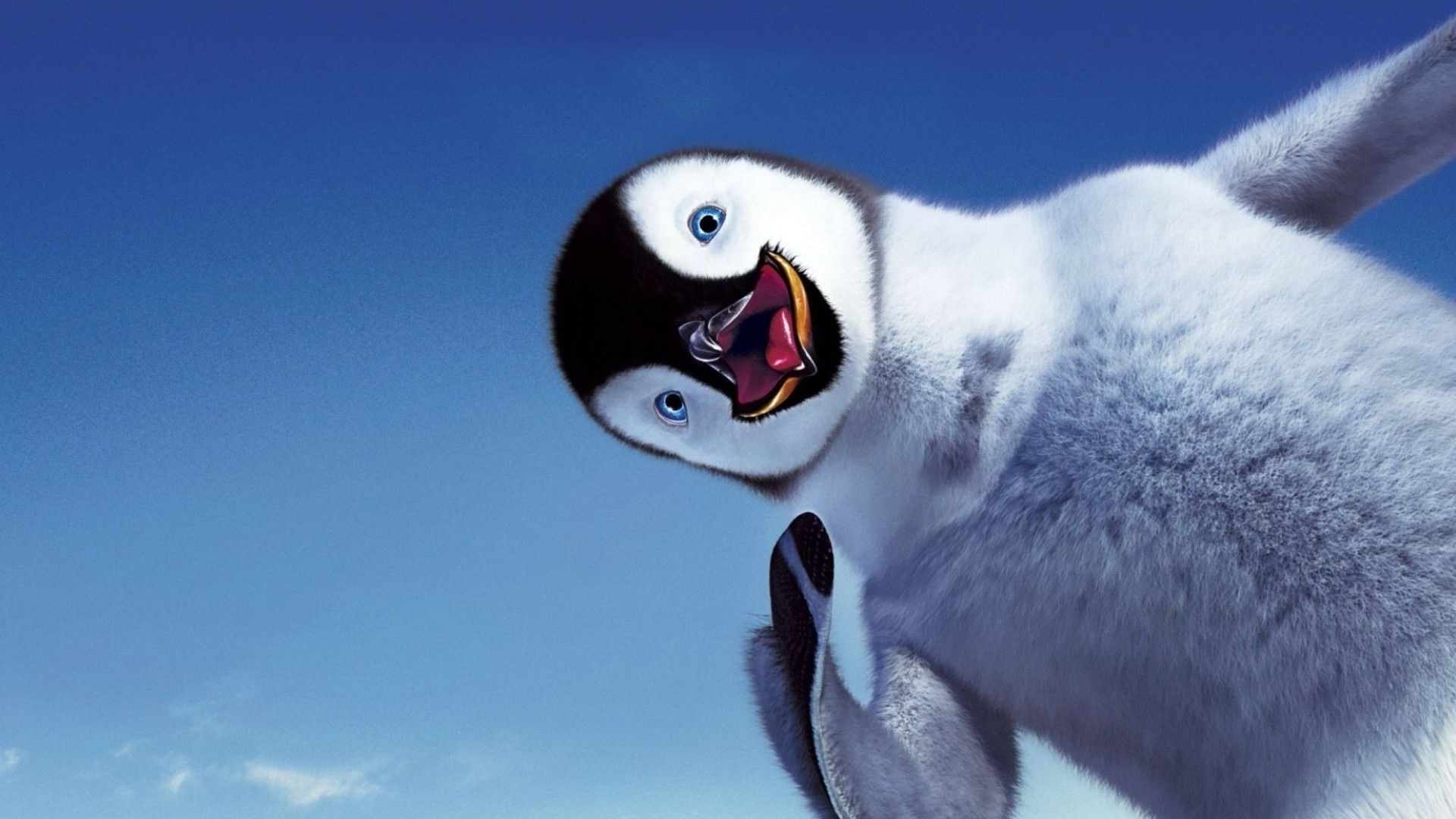 Yaramaz bebek penguen gülümsüyor ve sallıyor