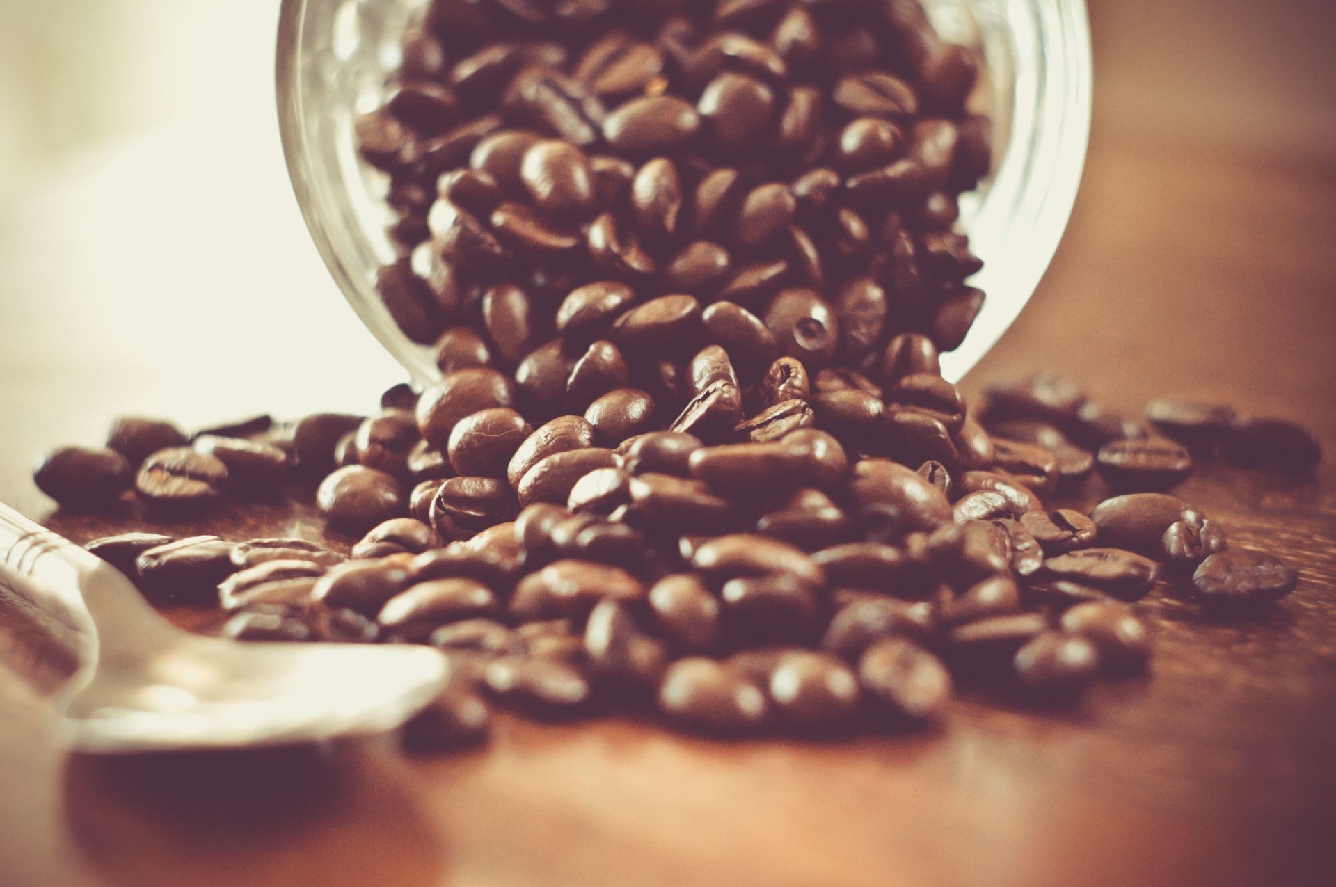 Masaya dağılmış kahve çekirdekleri