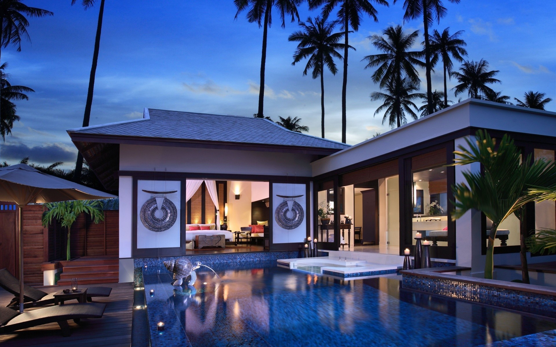 Otelin lüks iç mekanlara sahip yüzme havuzu