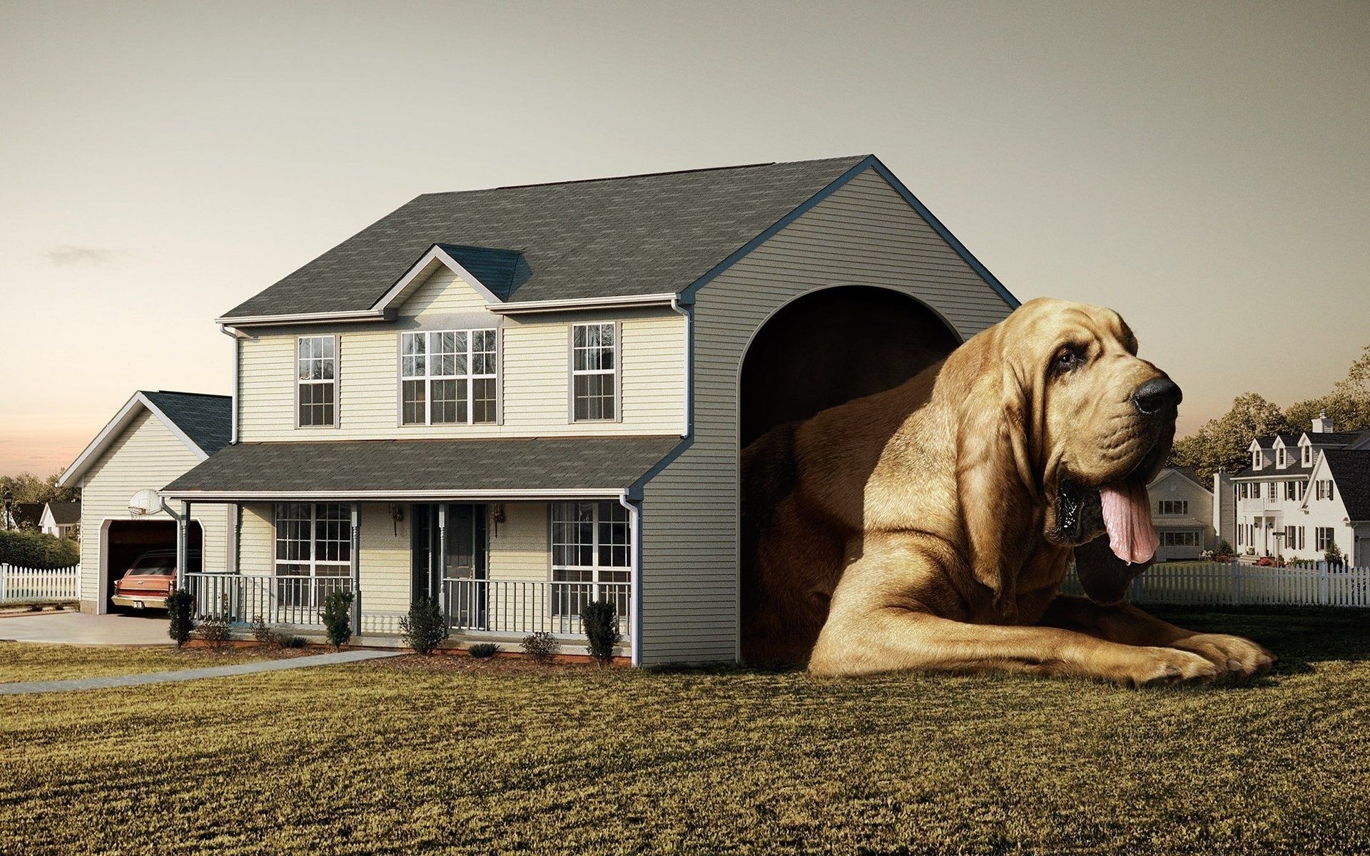 Silahlı bir adam ve çılgın bir evde bir köpeği olan bir adam
