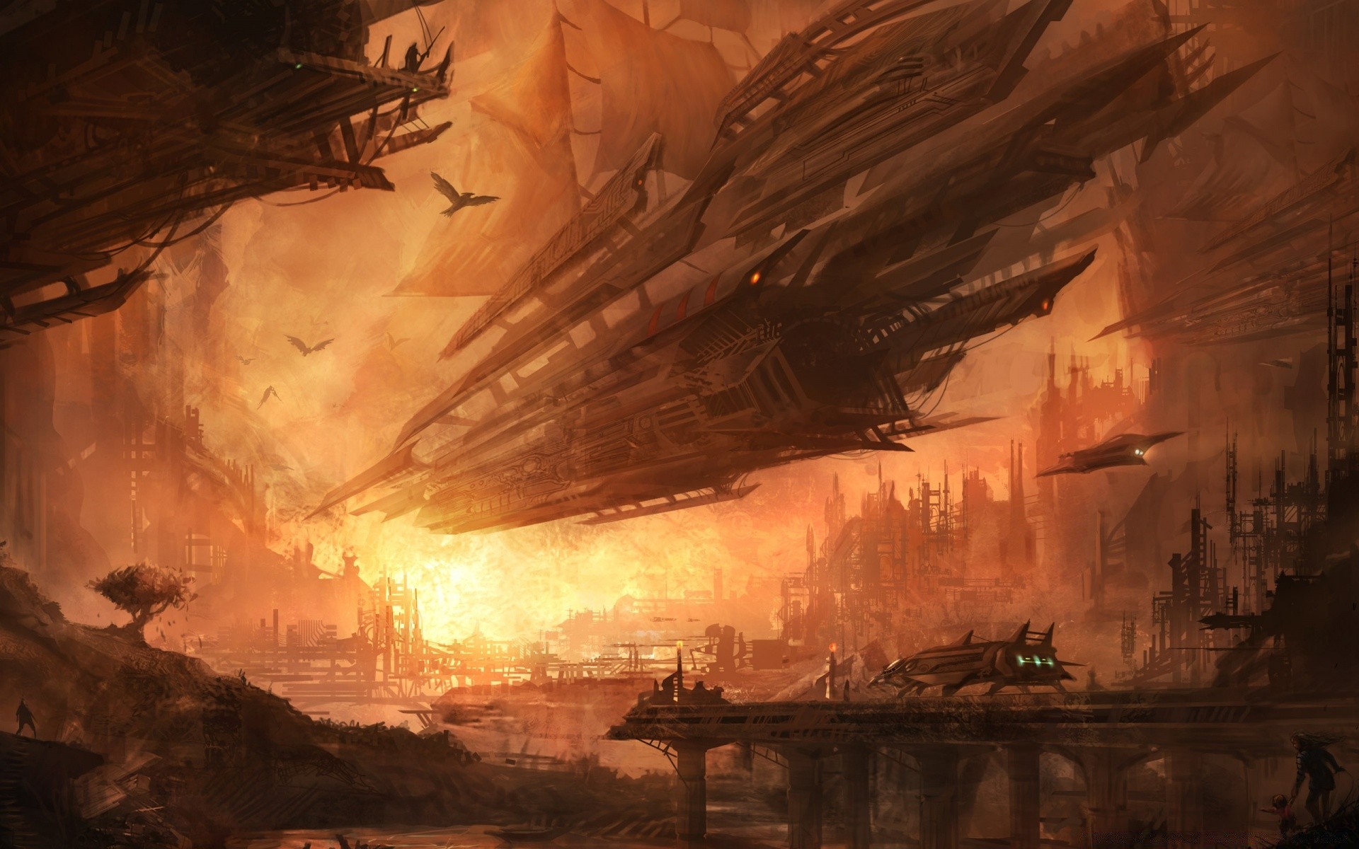 Uzaylılarla savaş hakkında güzel bir fantezi manzarası