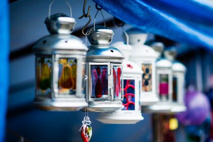 Tatilciler için güzel fenerler ve banklara sahip bir parkTatilciler için güzel fenerler ve banklara sahip bir park