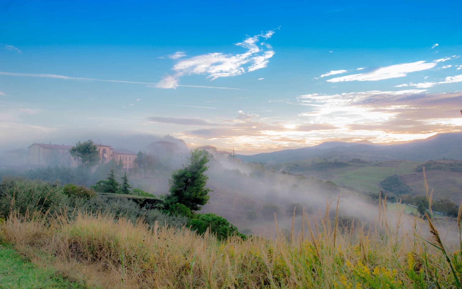 Ağaçların arasından güzel bir gökyüzü görülebilir