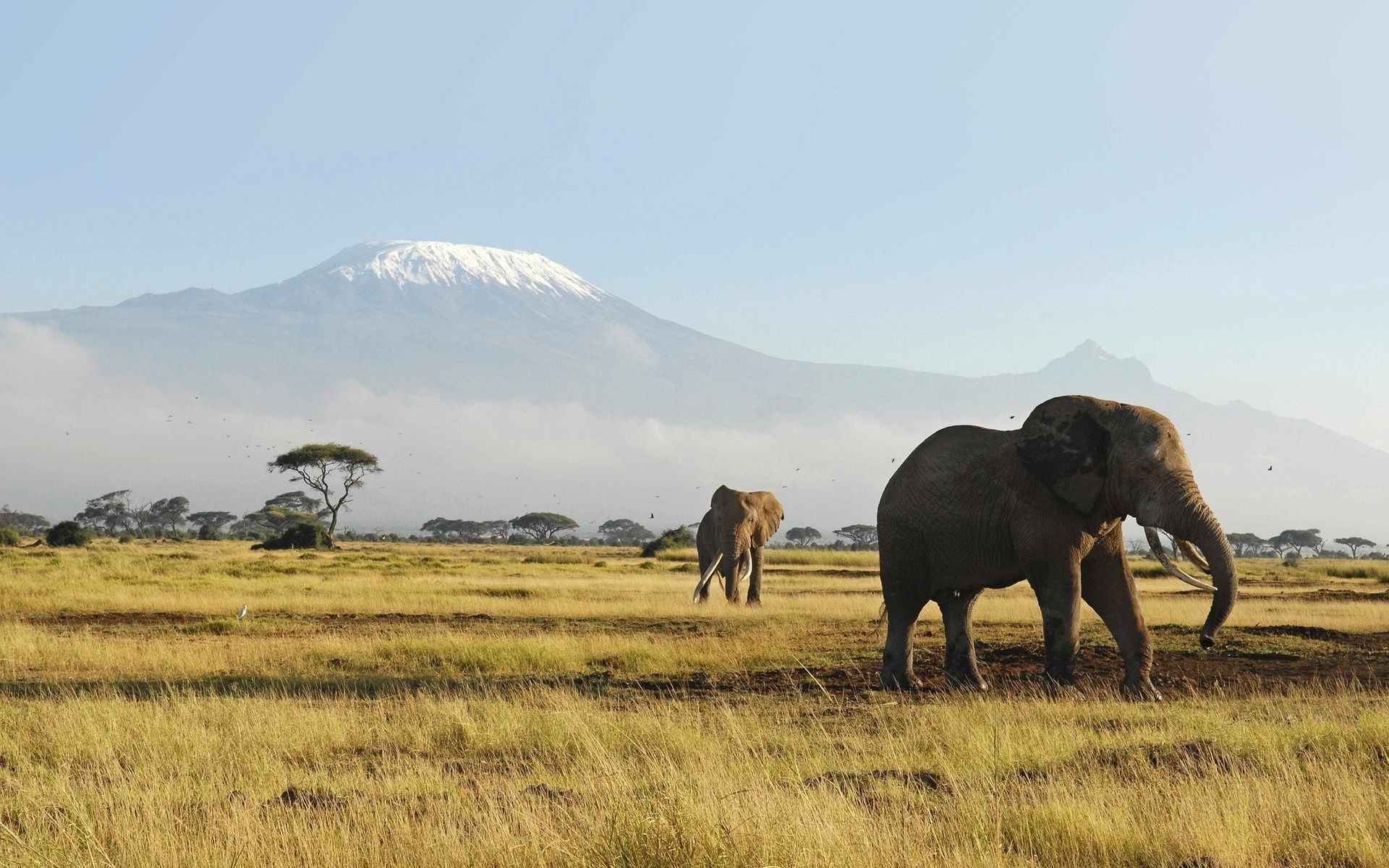 Filler sürüsü, batan güneşin ışığı altında konaklamaya gider