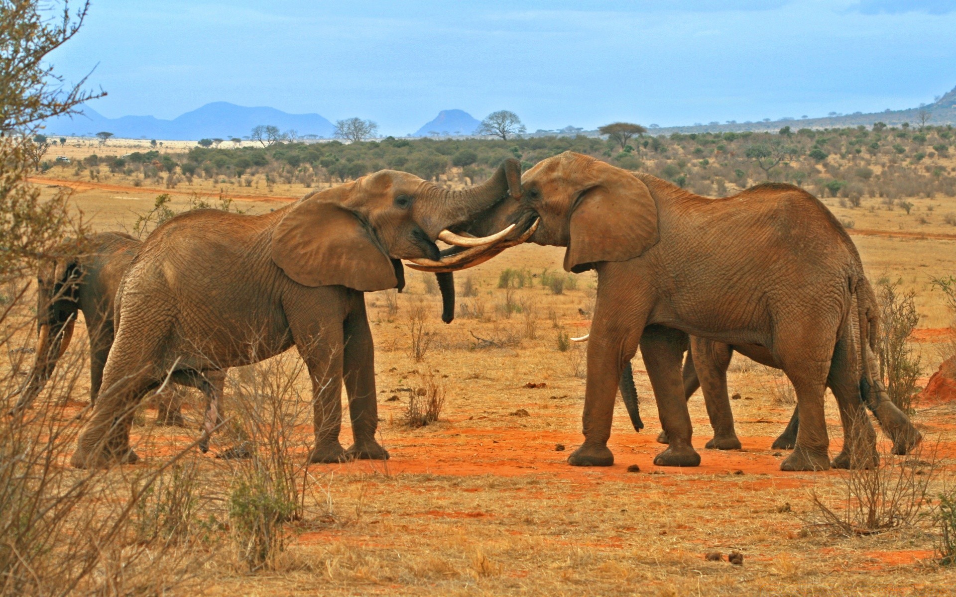 Yaklaşan bir fırtına sırasında savanadaki fil ailesi