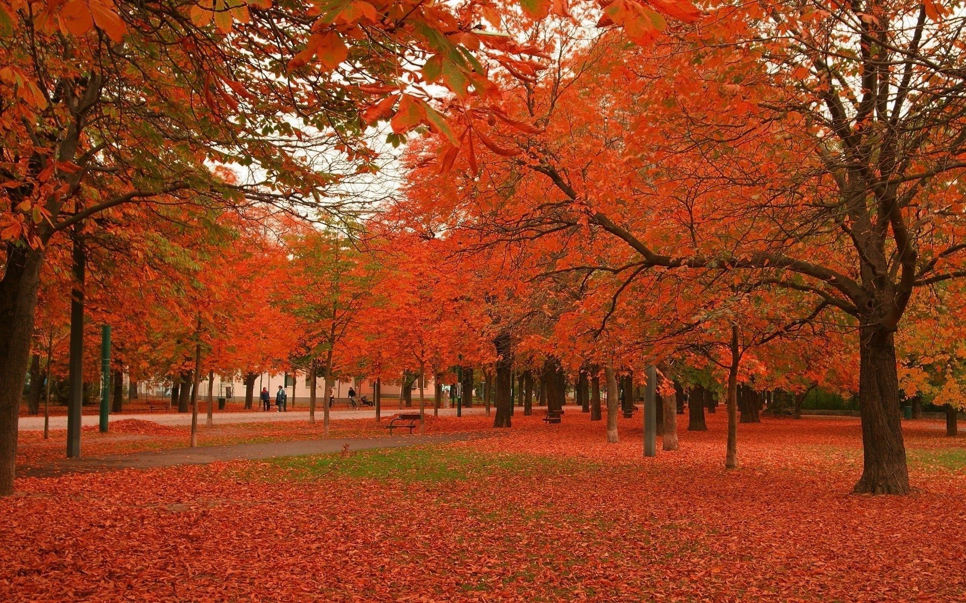 Sonbaharda park. Sarı yapraklar tüm dünyayı uykuya daldı