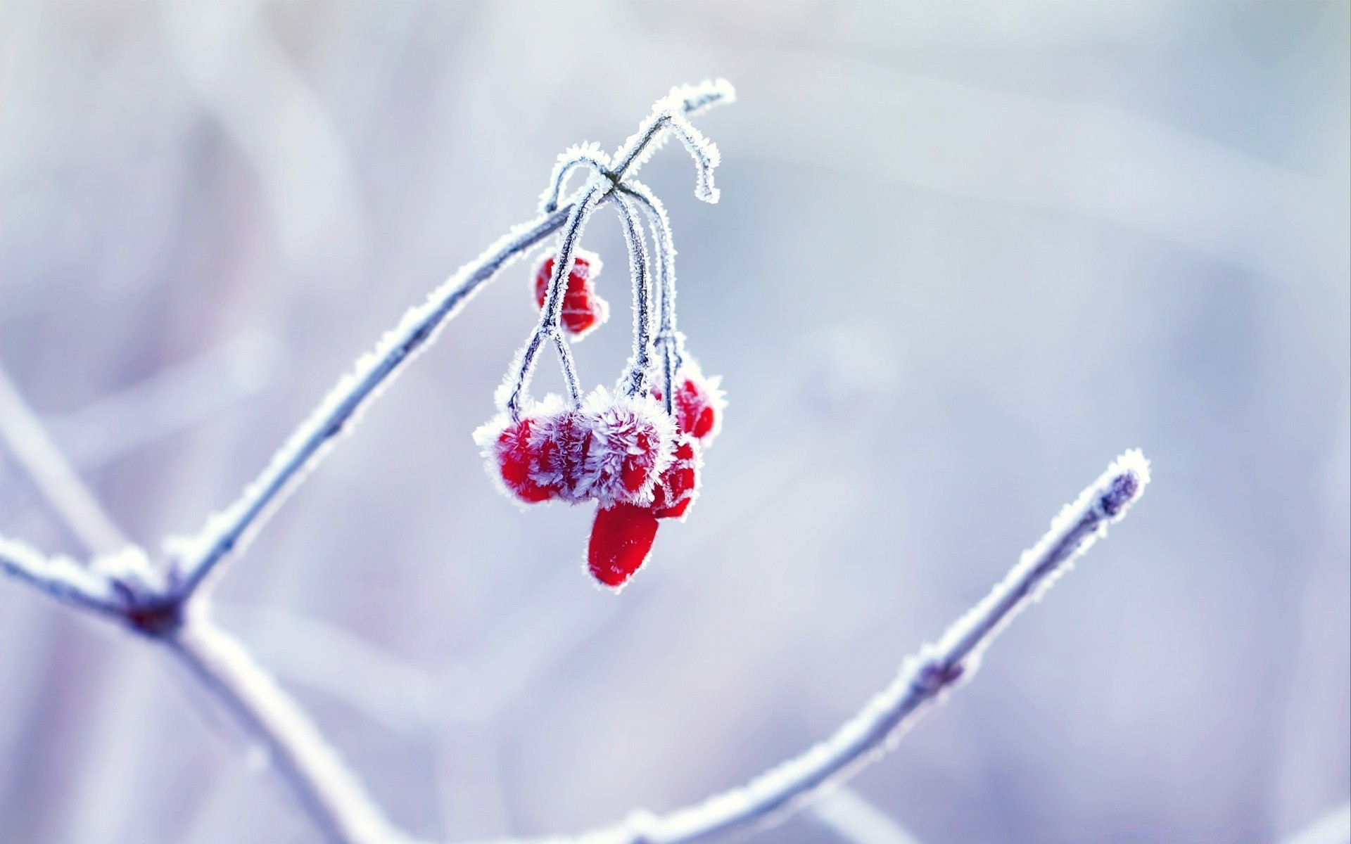 Kırmızı meyveleri bulanıklaştı. beyaz don
