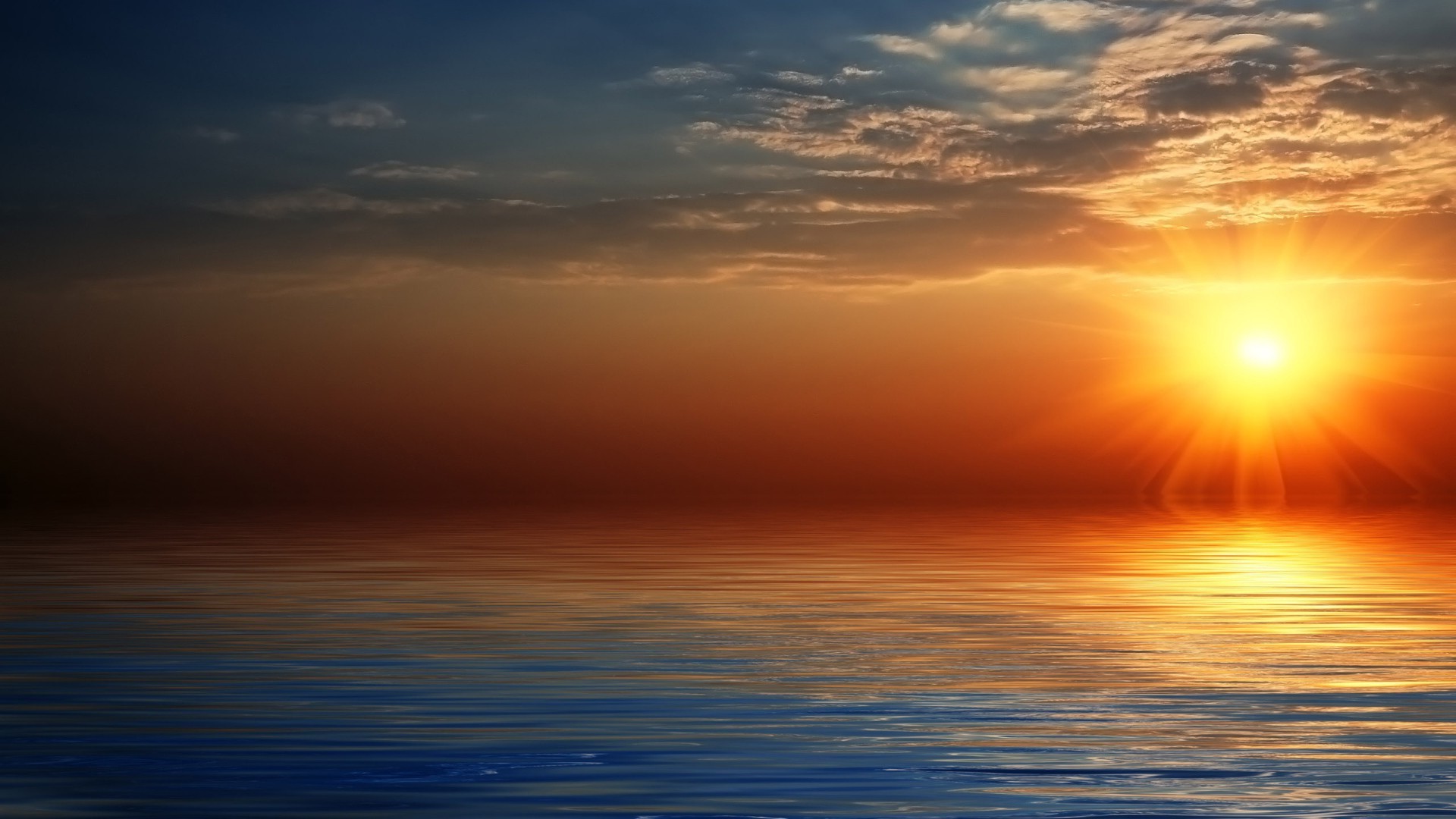 Su yüzeyinin üzerinde gün batımı veya şafak vakti