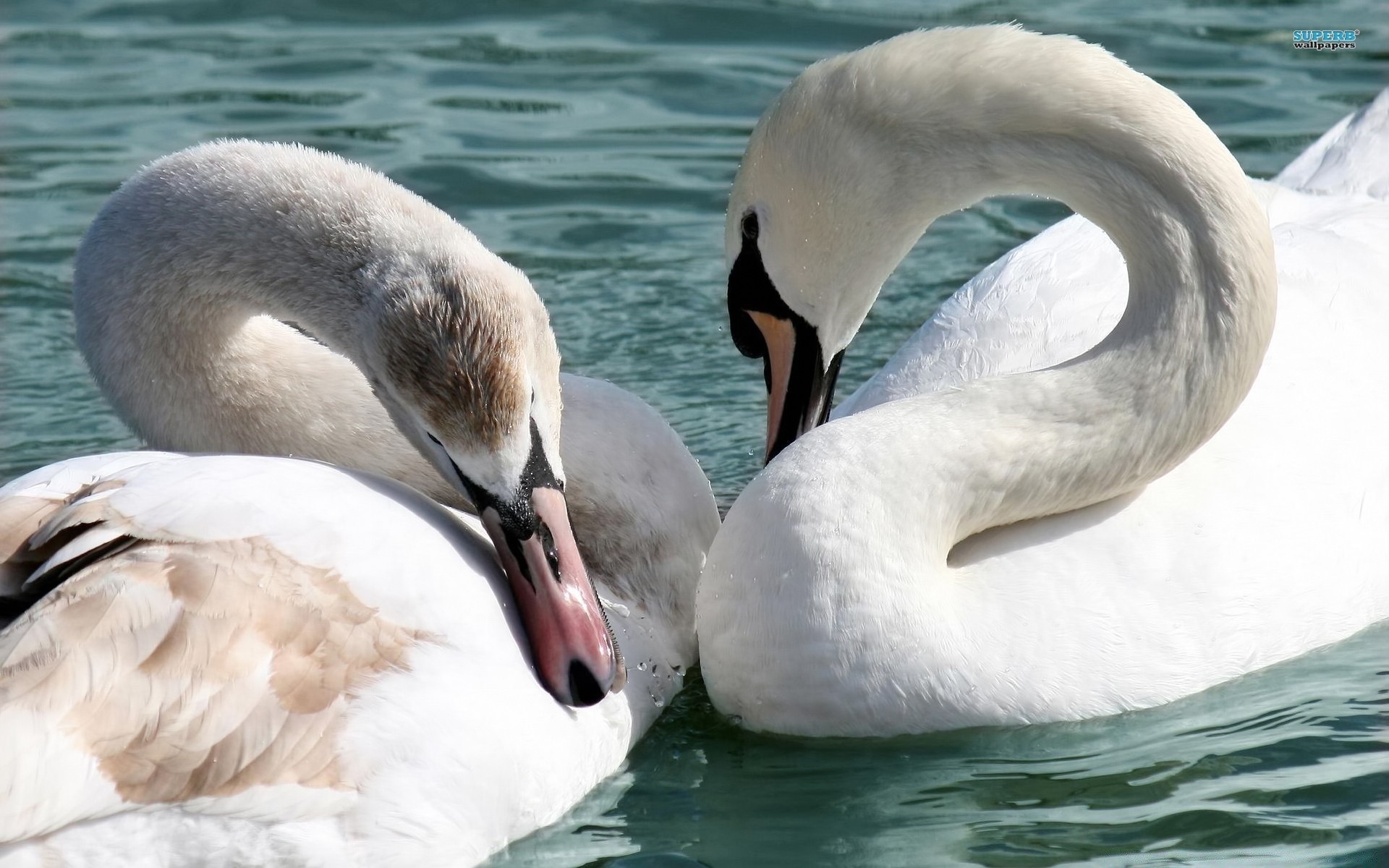Sevimli kuğular yüzüyor ve yıkanıyor