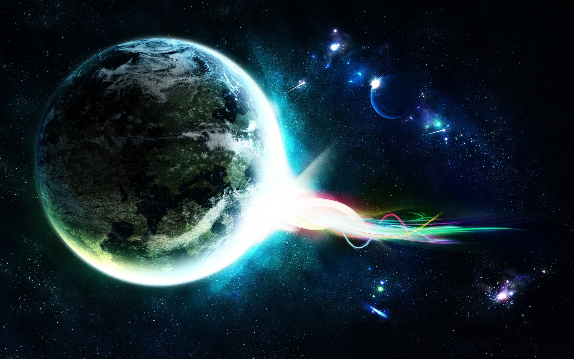 Soyutlama. Uzayda bir gezegen ve bir enerji pıhtısı