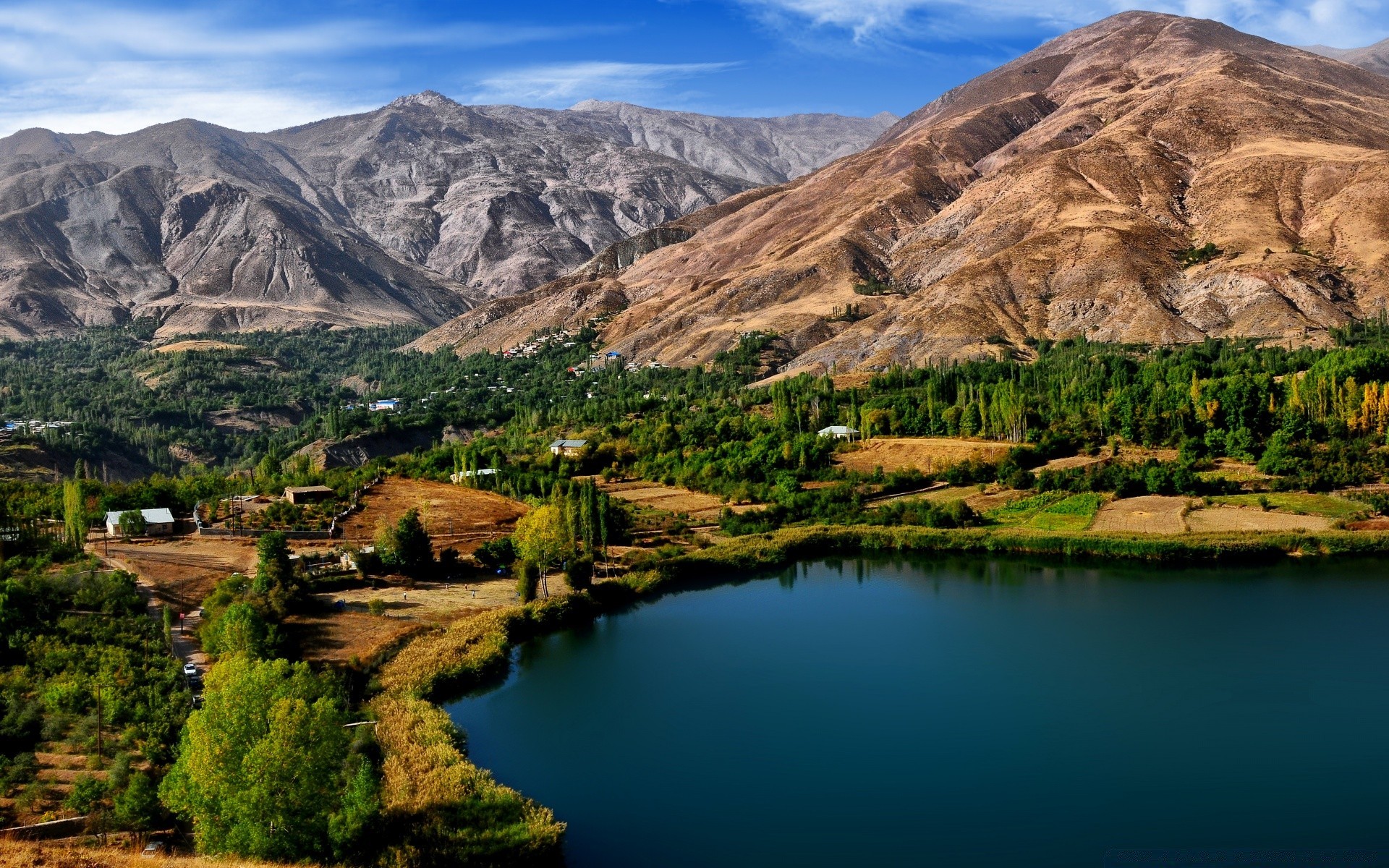 Gölün yanındaki dağlarda küçük bir yerleşim yeri