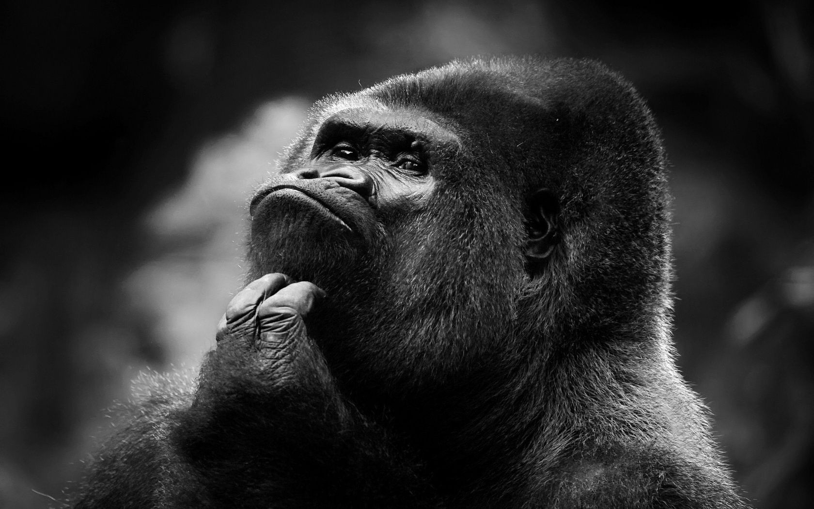 Siyah beyaz resim goril portresi