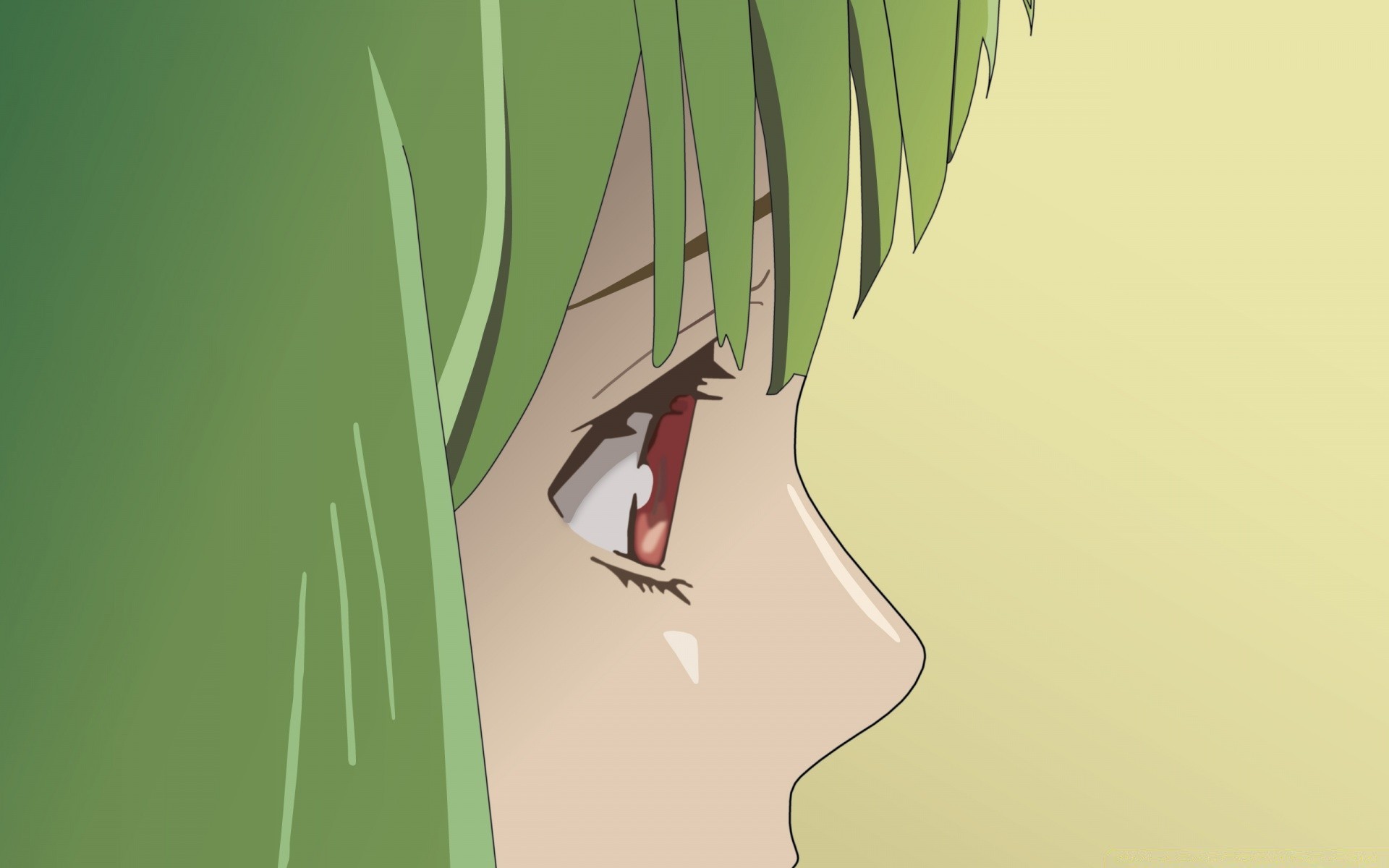 Yeşil saçlı Anime kız ağlıyor ve üzgün