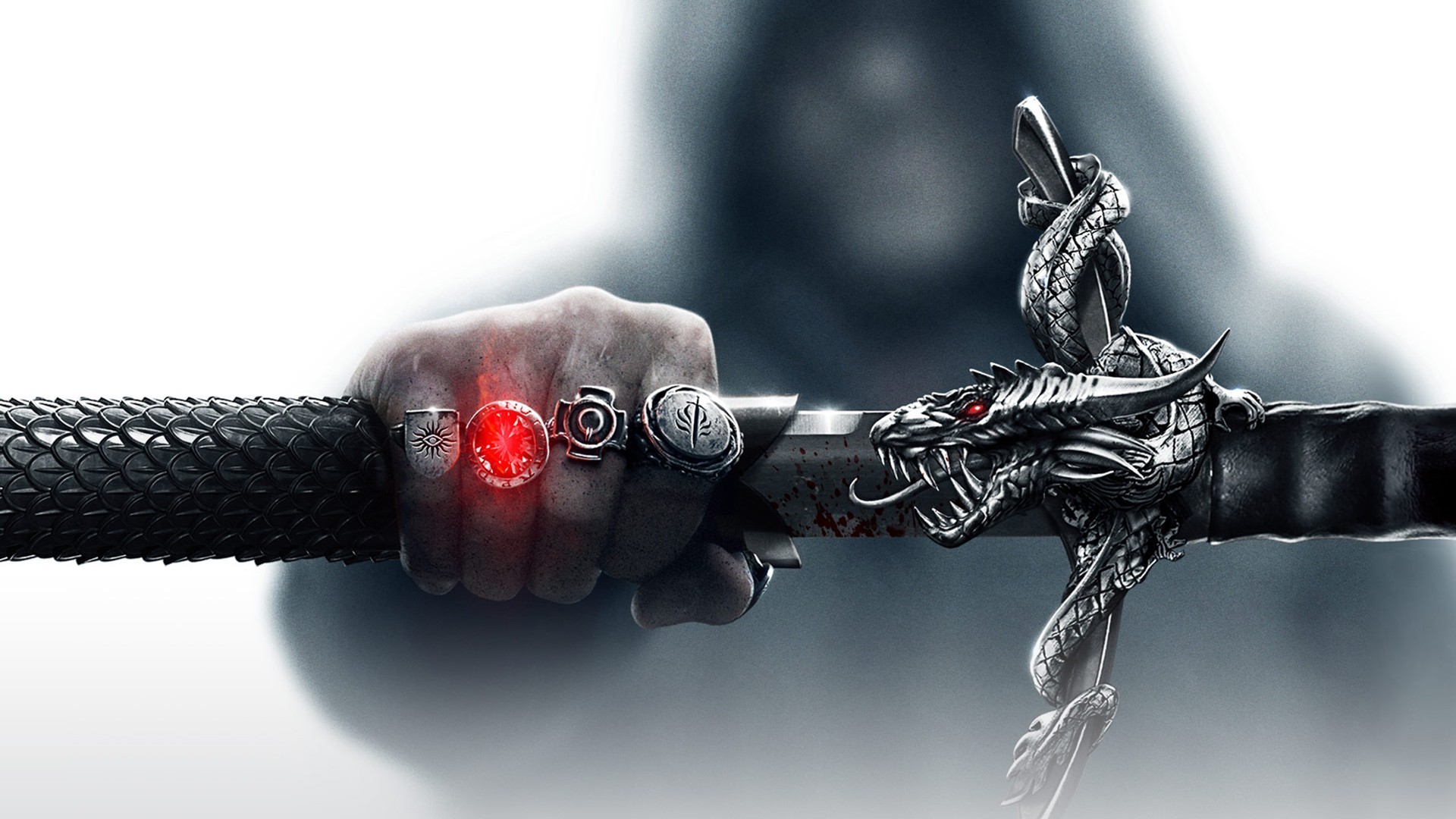 Doğanın manzarası ve büyük bir bıçak bıçakla sudan geçer