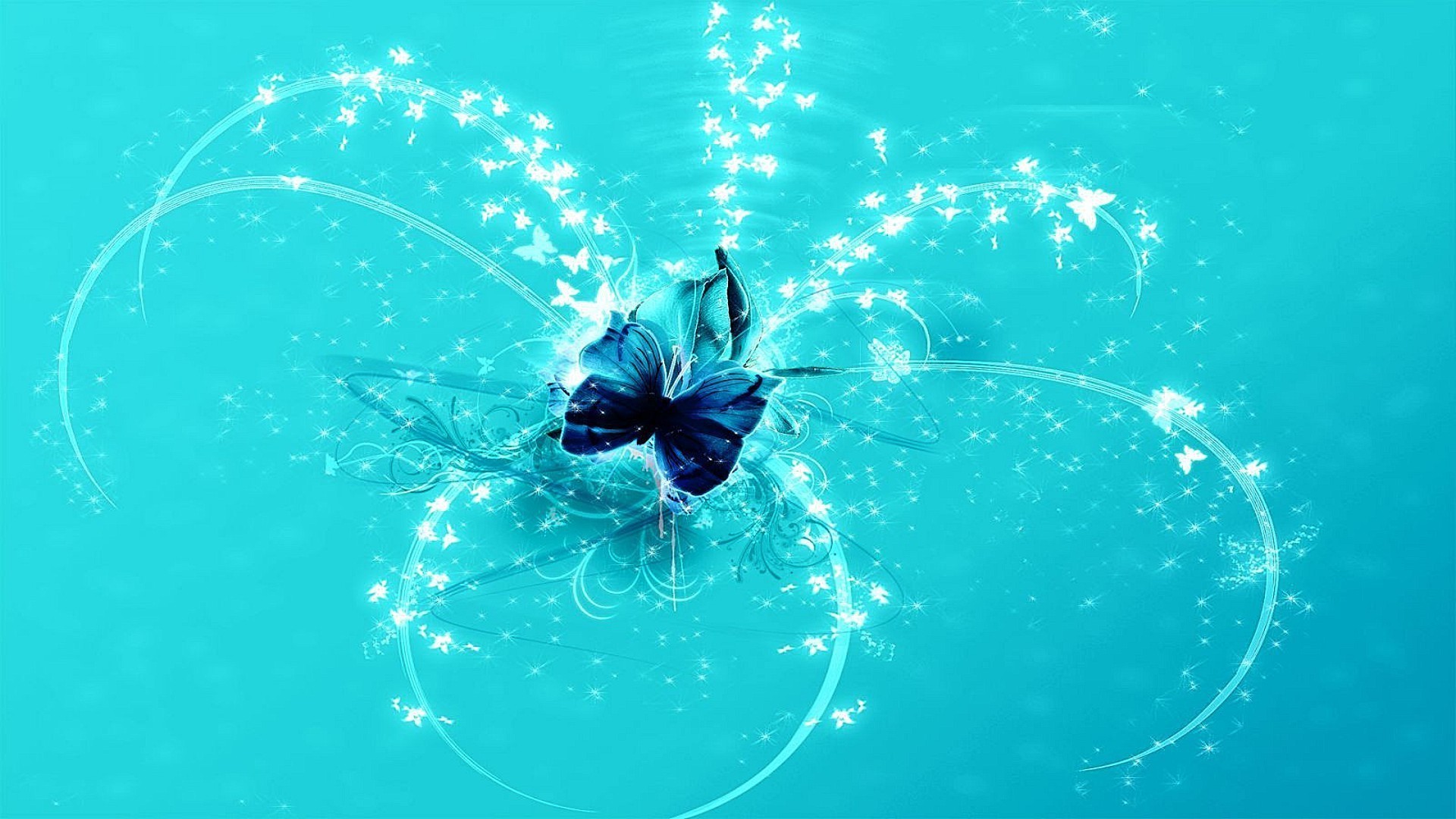 Mavi kelebek masmavi suyun üzerinde yatıyor