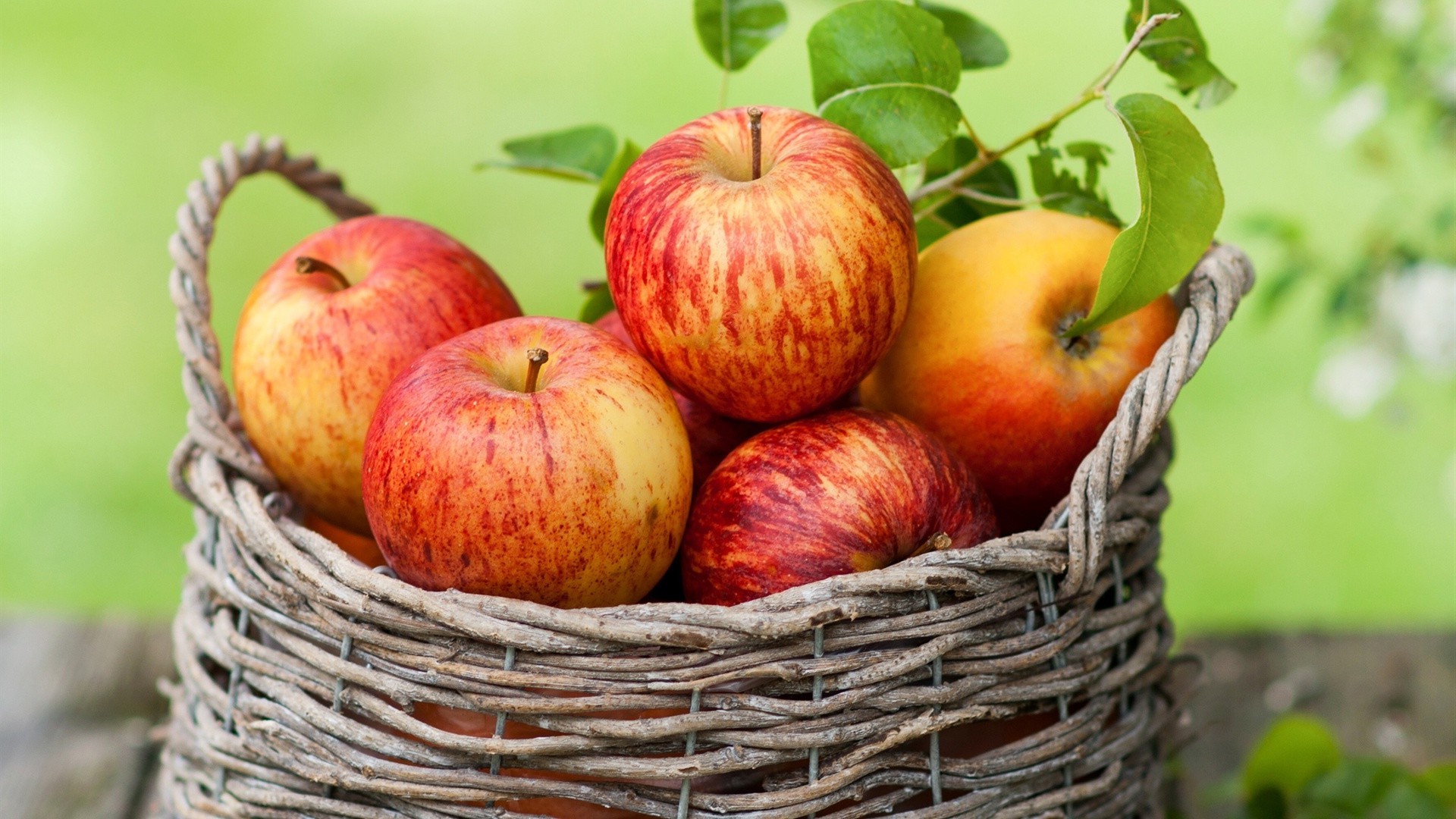 Çimlerin üzerinde mantarlarla dolu saplı büyük hasır sepet