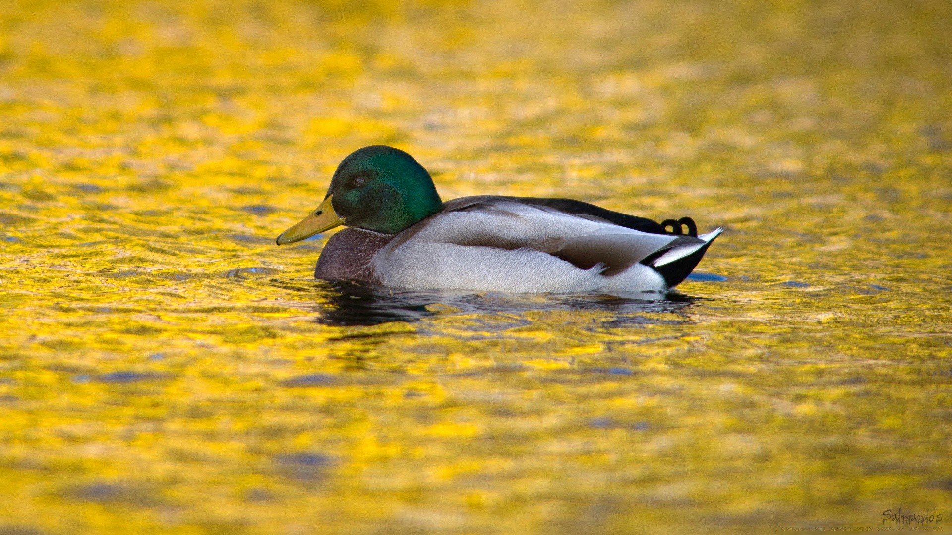 Suda çok sayıda nilüfer yaprağı ve balıkların yanında yüzüyor