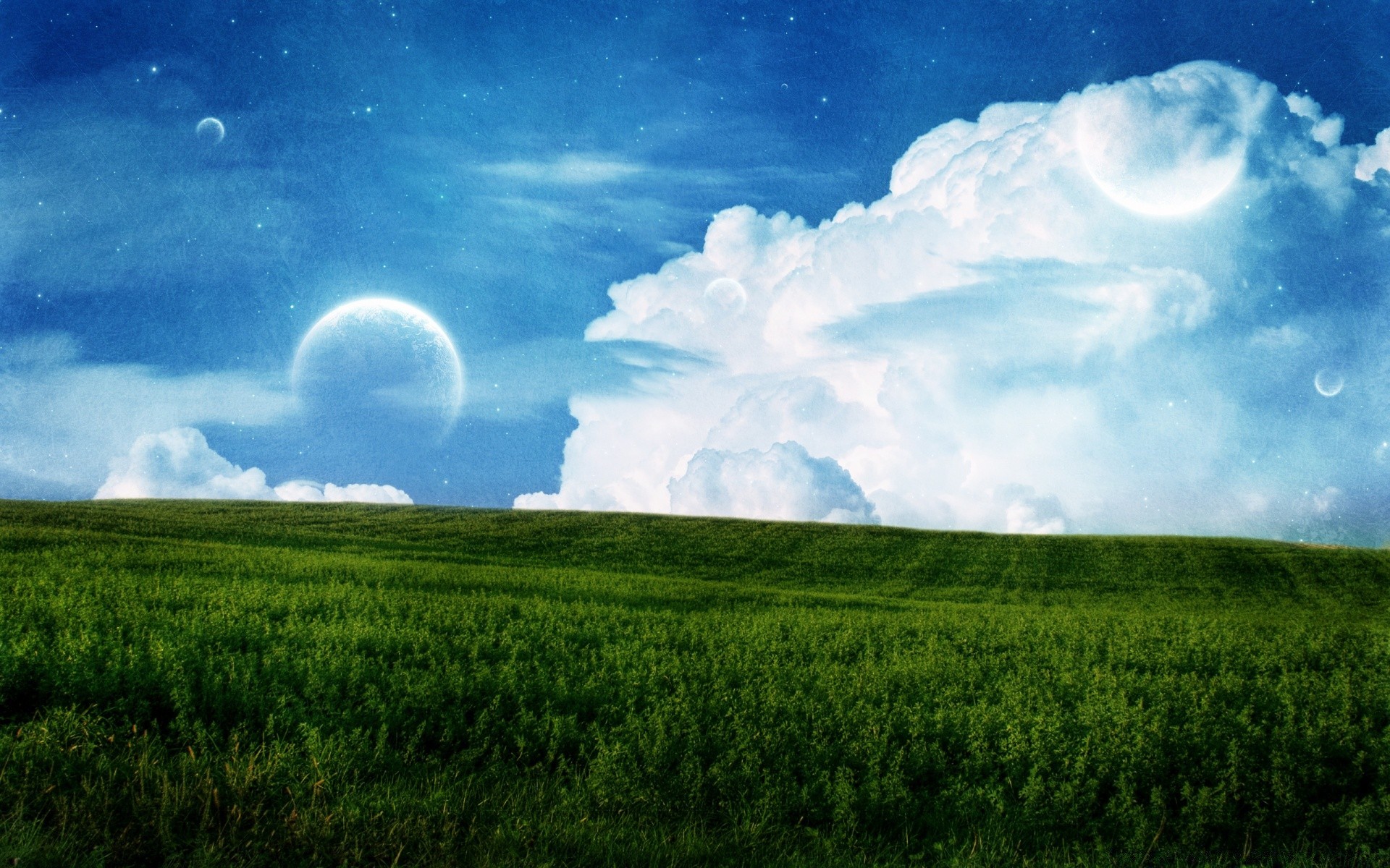 Çocuklar parlak, güneşli bir günde gökyüzüne bakarlar