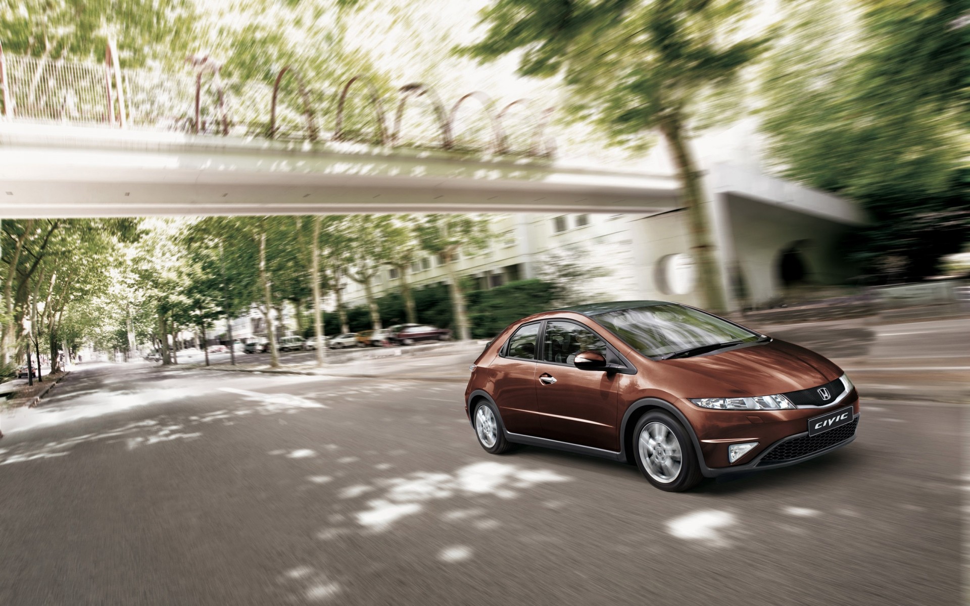 Kahverengi honda'nın anlık görüntüsü hız yolu caddesi