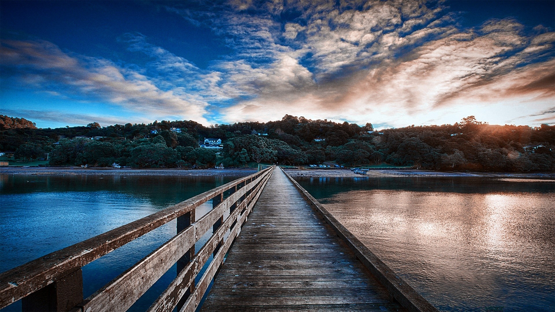 Deniz kıyısındaki ahşap iskeleden gün batımı manzarası