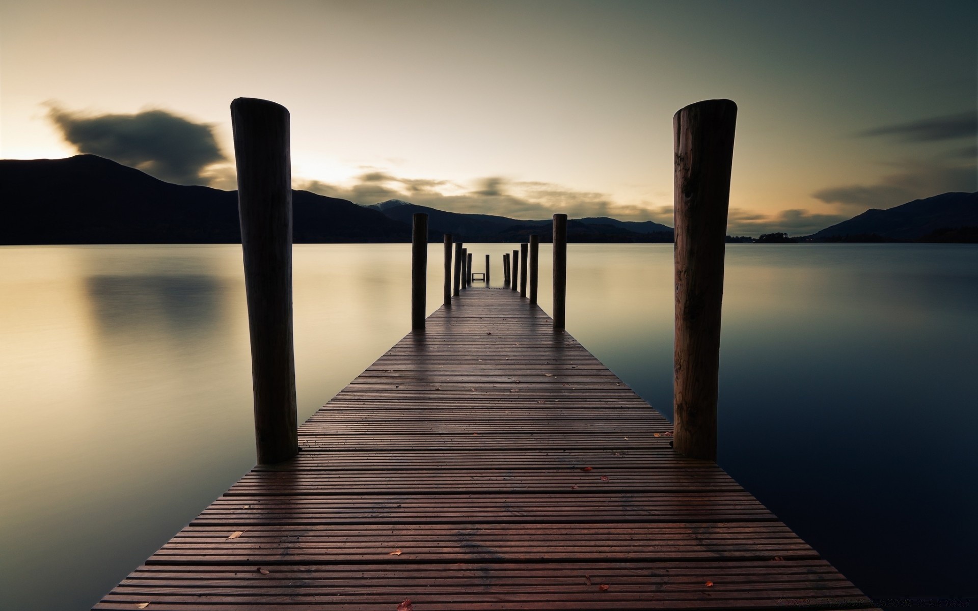 Sakin bir gölün karşısındaki köprü, sakin sudaki ağaçların yansıması