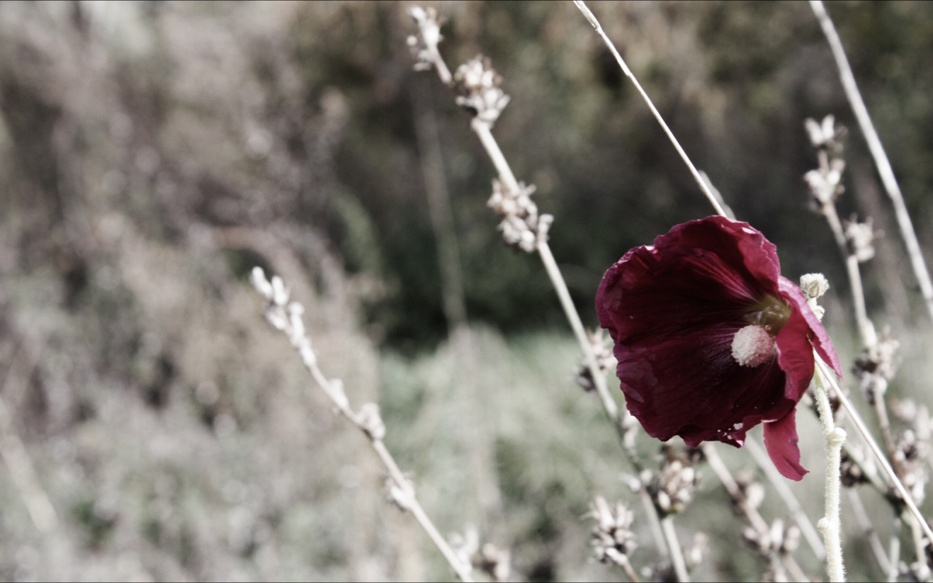 Kurutulmuş çim saplarının arka planına karşı Brdovy lale