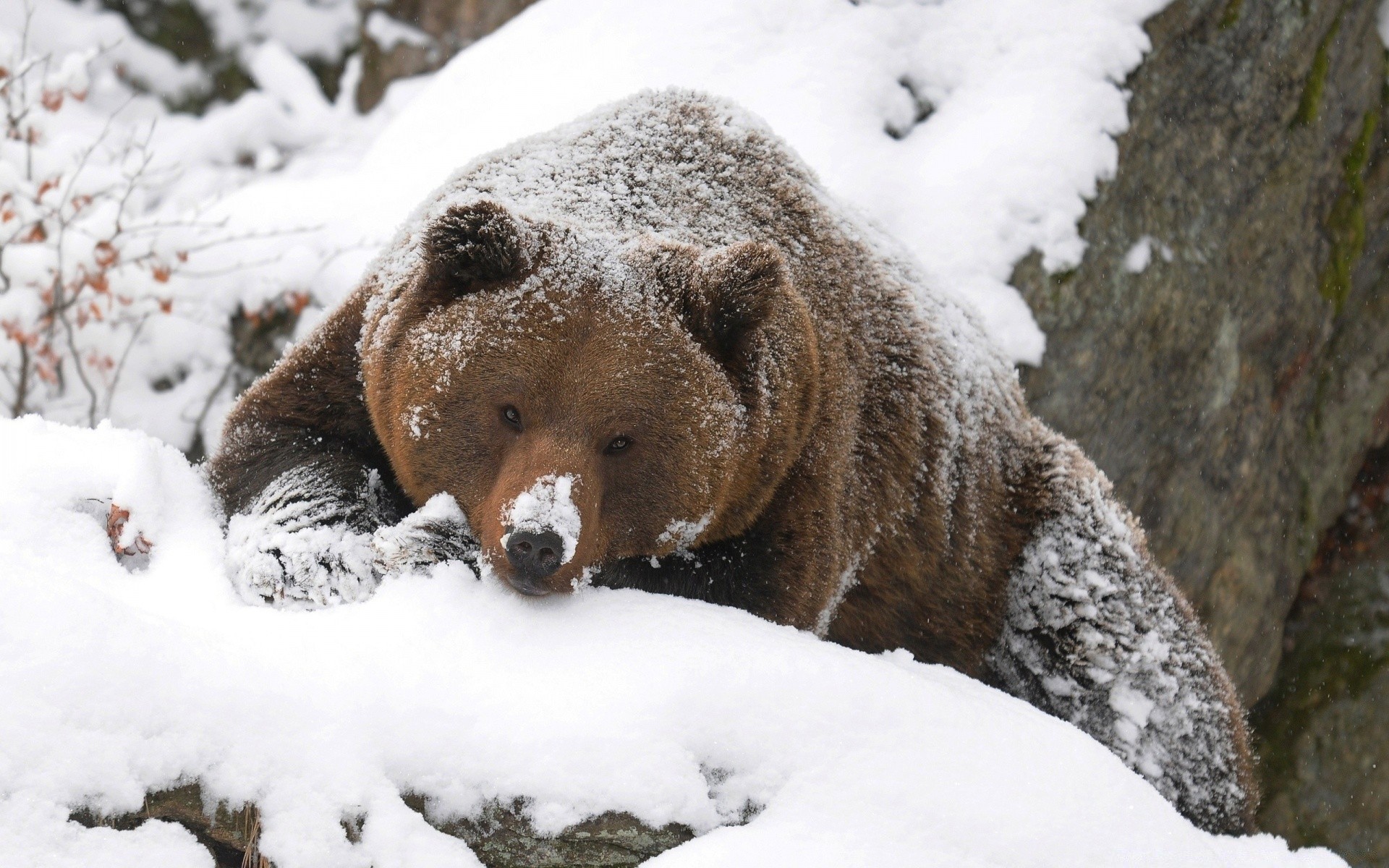 Kar yığınının kapağının altındaki yerli yırtıcı hayvan