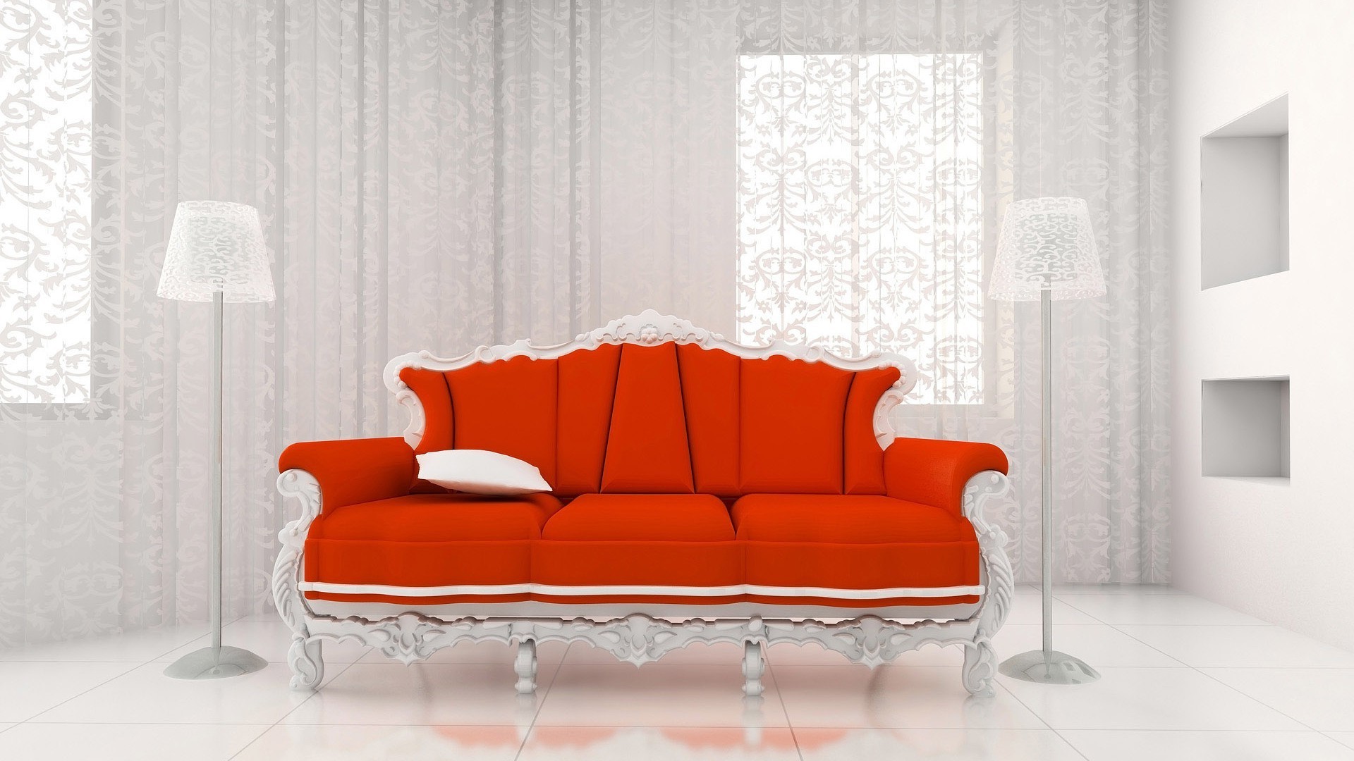 Odada kırmızı-beyaz renk kombinasyonu