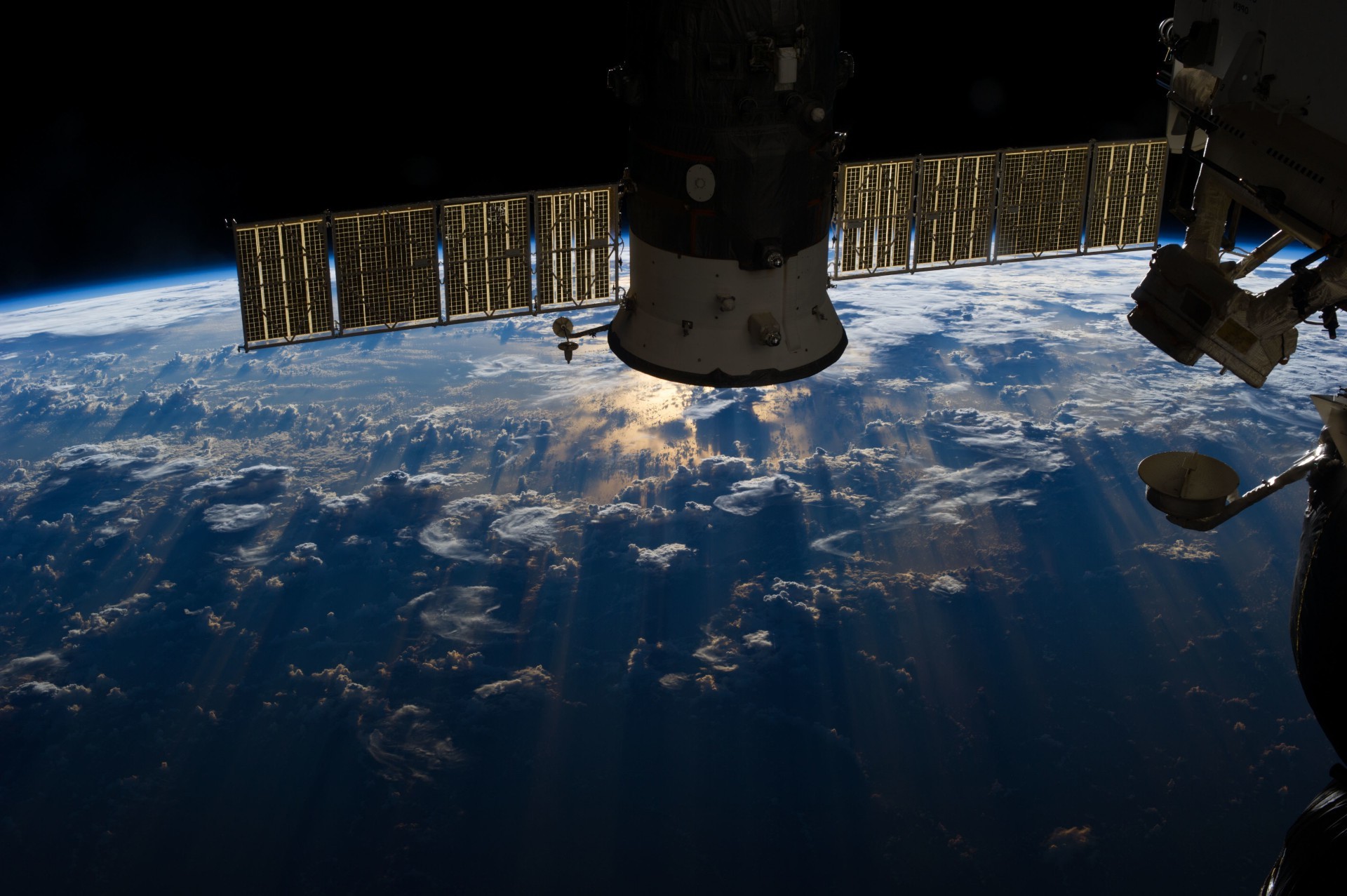 Yeryüzünün arka planına karşı uzayda uzay istasyonu