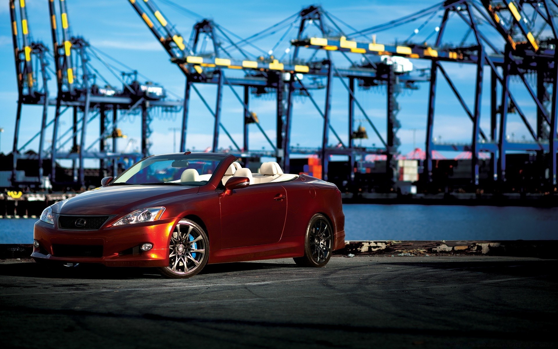 Kıyıda kırmızı pahalı araba