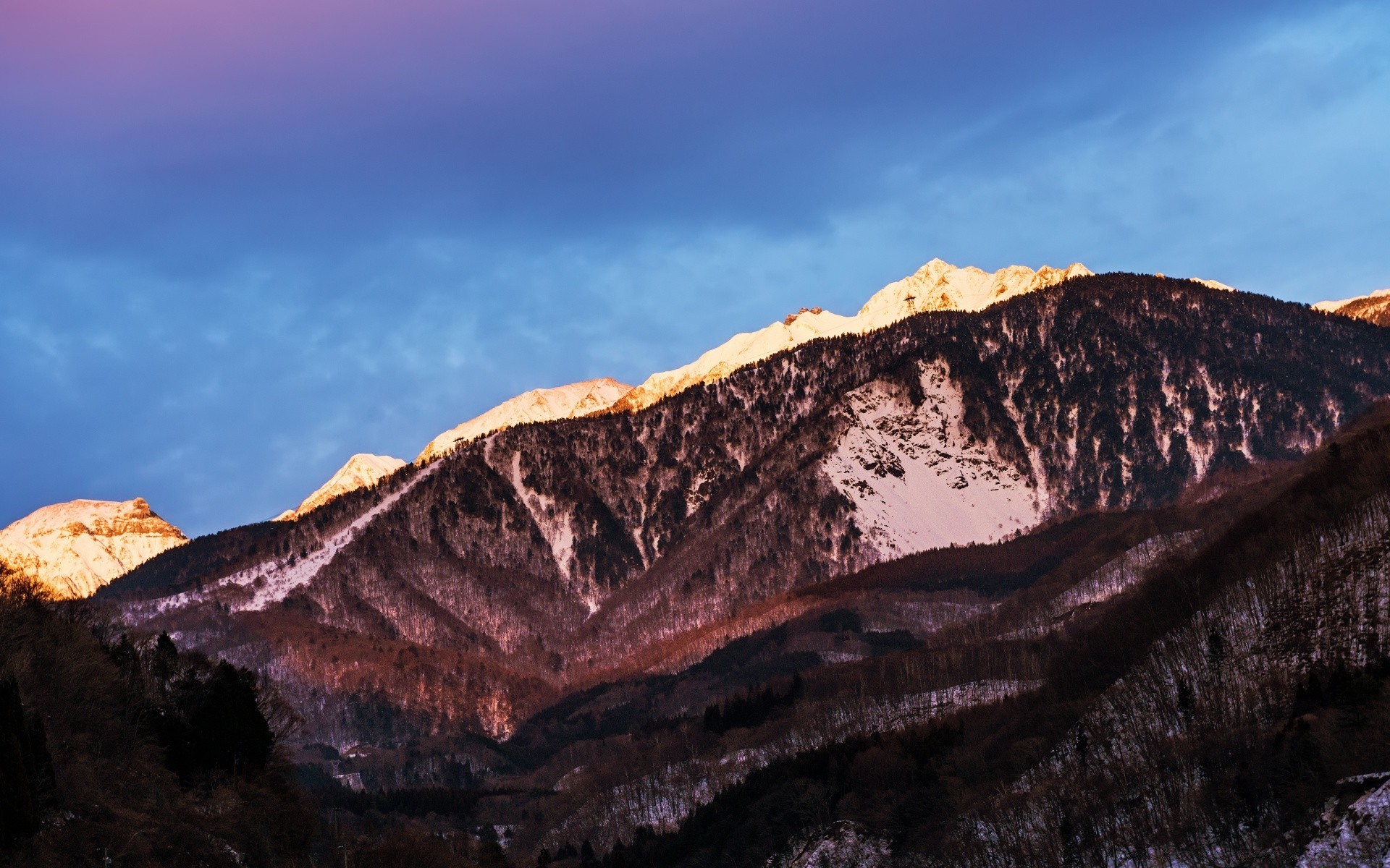 Gökyüzünün arka planına karşı ormanlık dağların manzarası