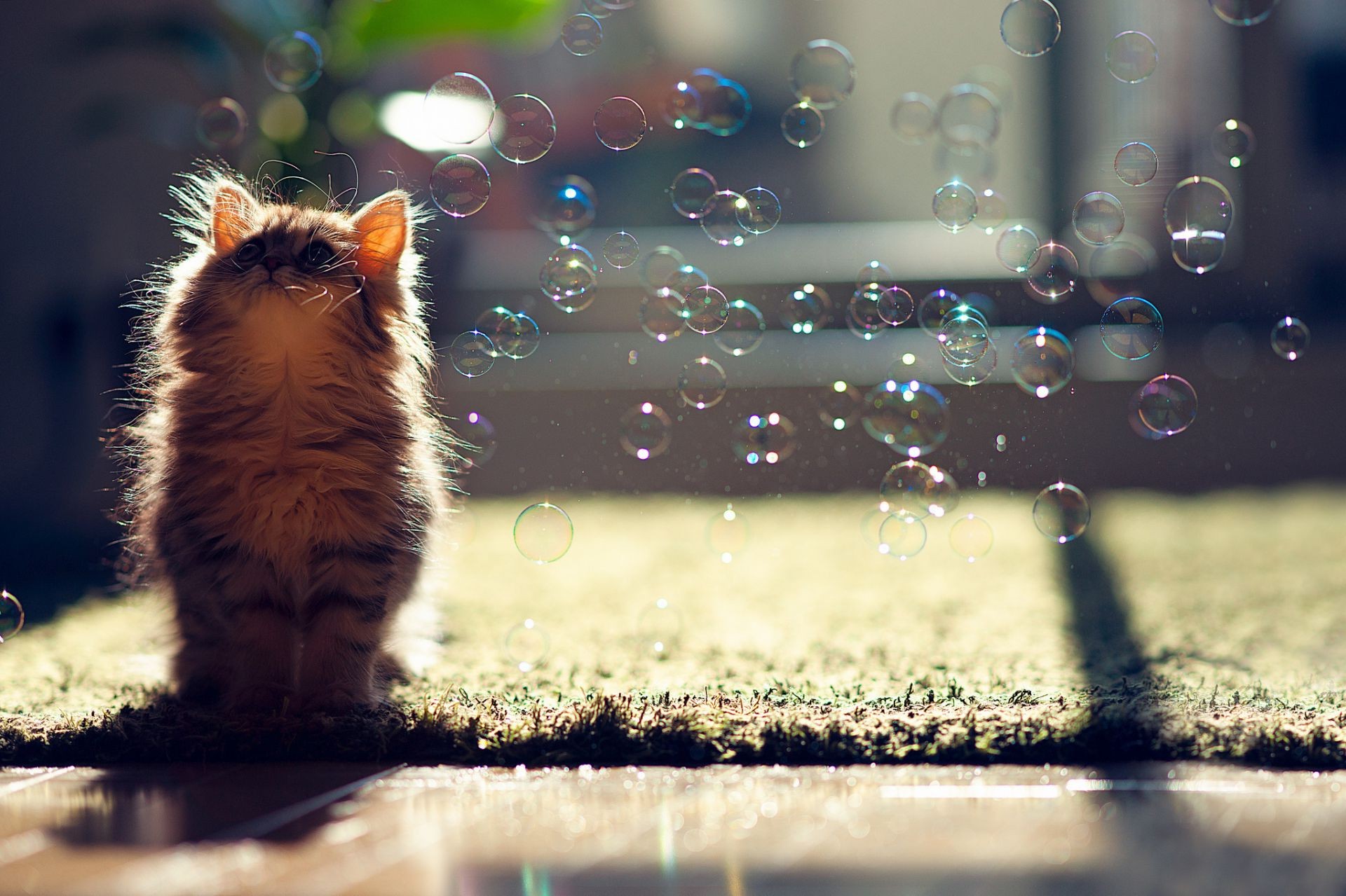 Evin duvarındaki küçük beyaz kedi yavrusu