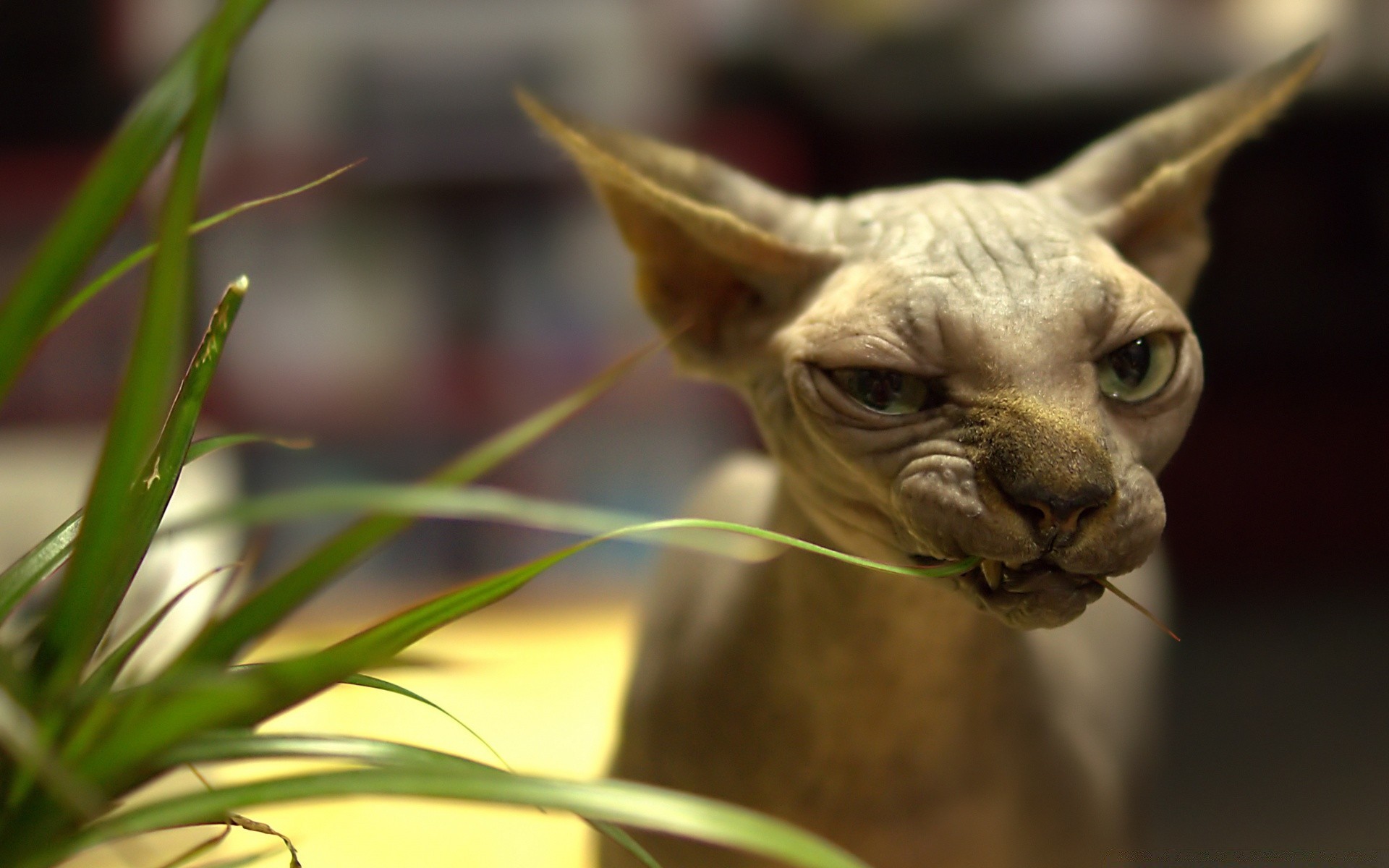 Kel kedi ot yiyor