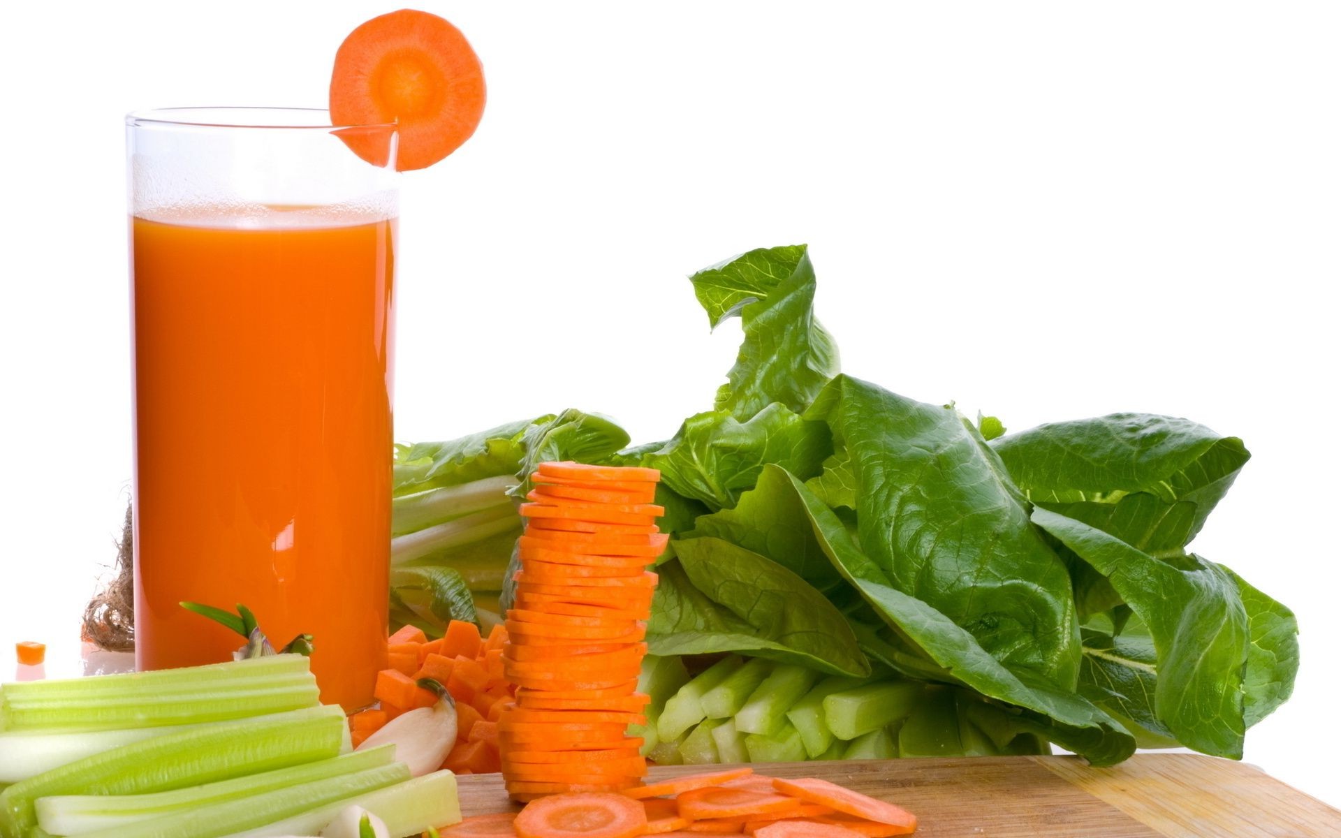 Masada doğranmış sebzeler ve bir bardak havuç suyu