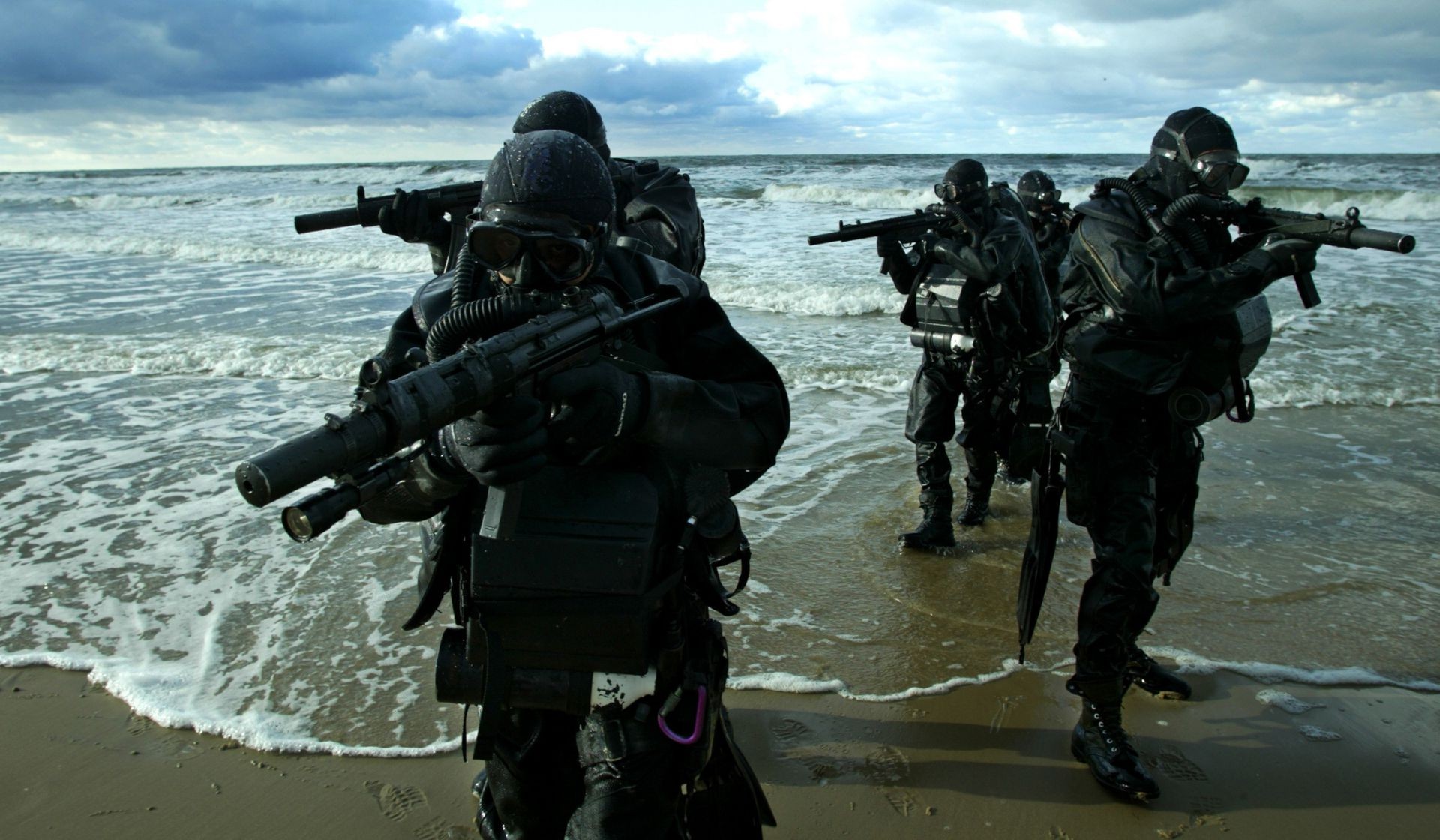 Özel kuvvetler, kıyıda ellerinde silahları olan