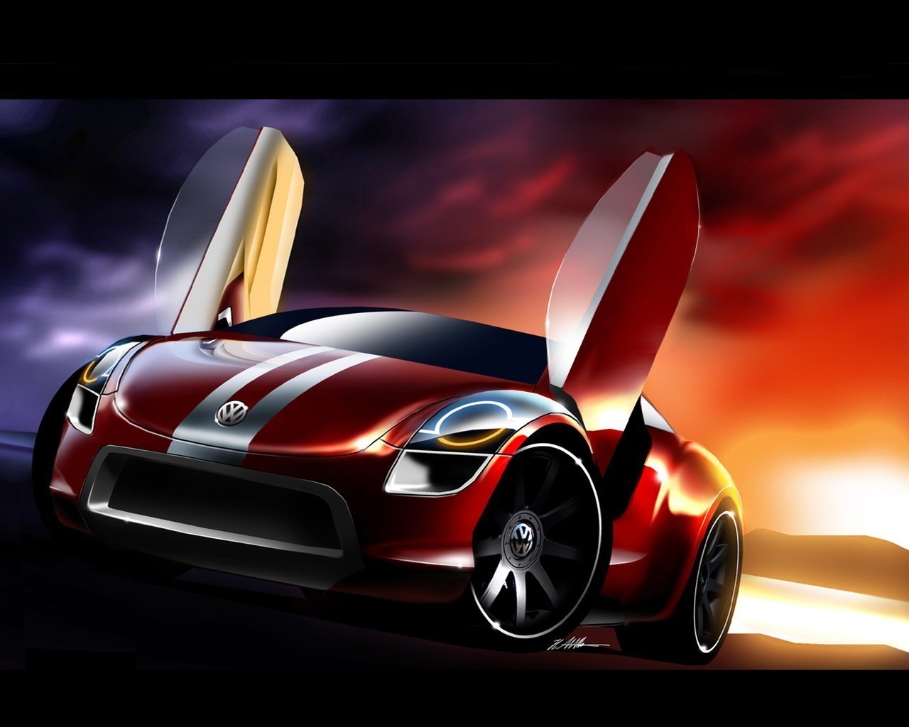 Kırmızı çizgili beyaz araba
