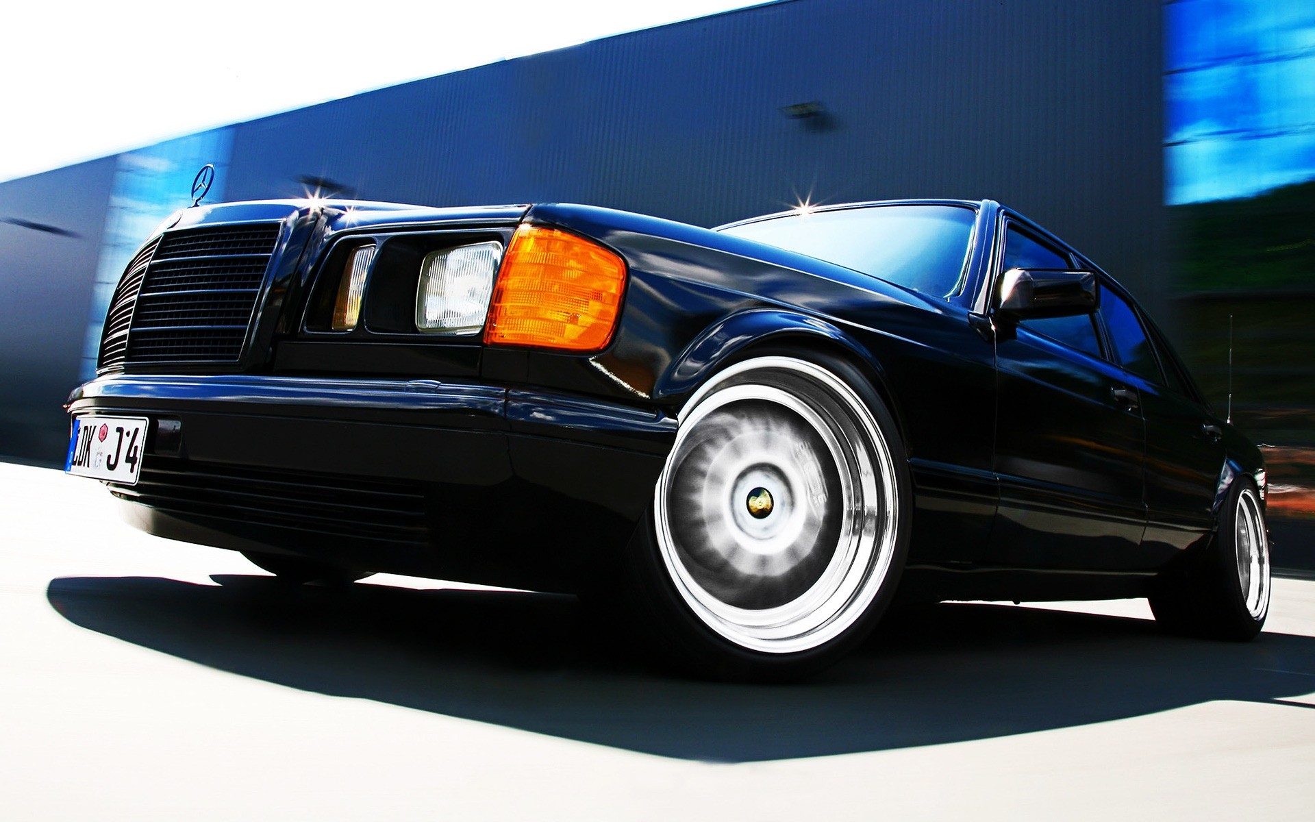 Şehir sokaklarında bir arabanın siyah-beyaz fotoğrafı