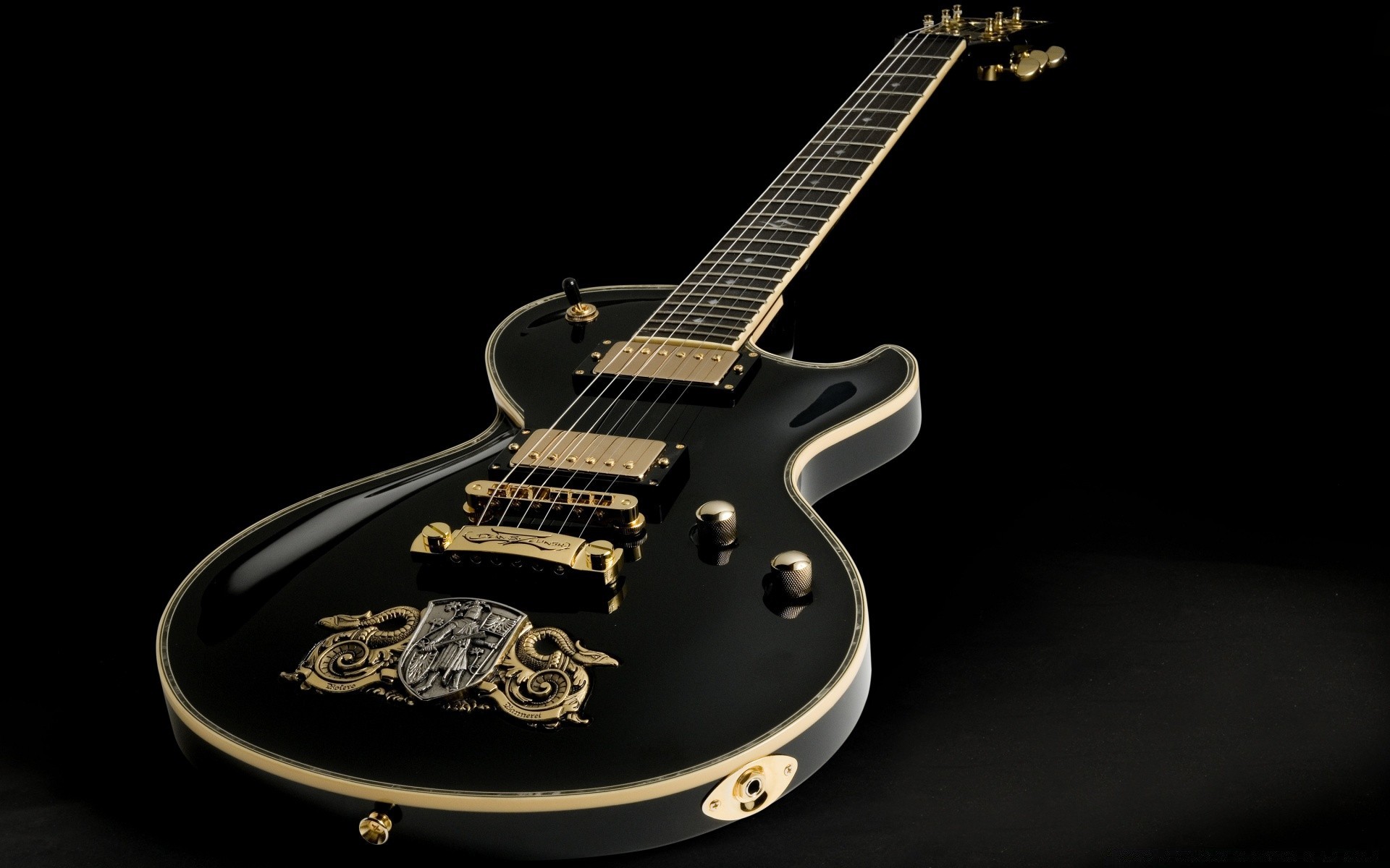 Vintage siyah ve altın gitar