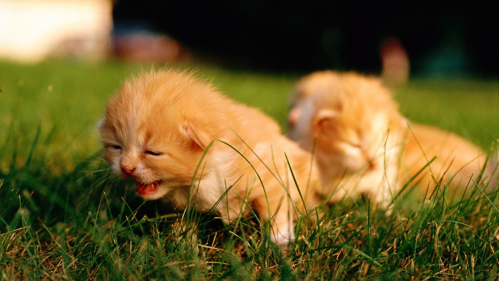 Çimlerin üzerindeki küçük kızıl saçlı yavrular