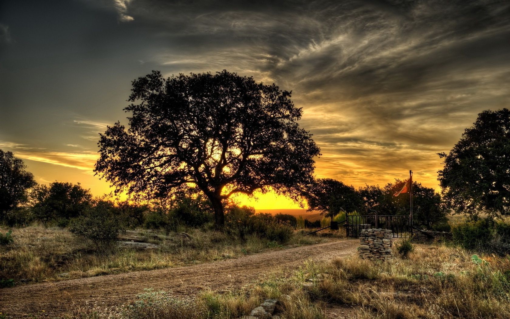 Manzara gün batımında büyük bir ağaçtır