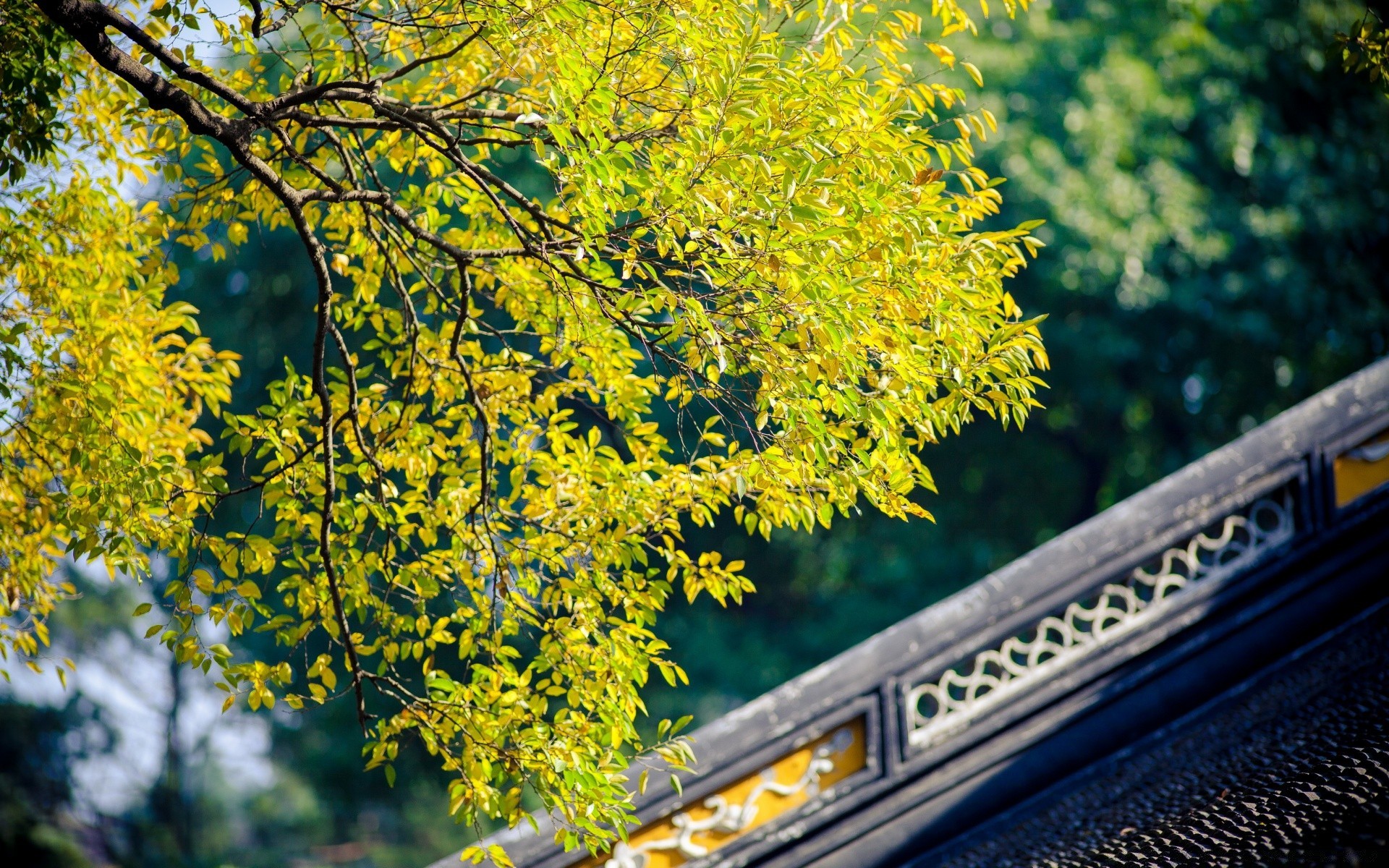 Sonbaharda ağaçların arka planına karşı sisli manzara