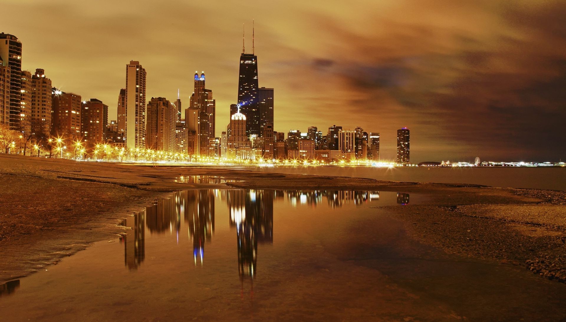 Sahildeki Almanya'nın mimari simgesel yapılarının gece aydınlatması