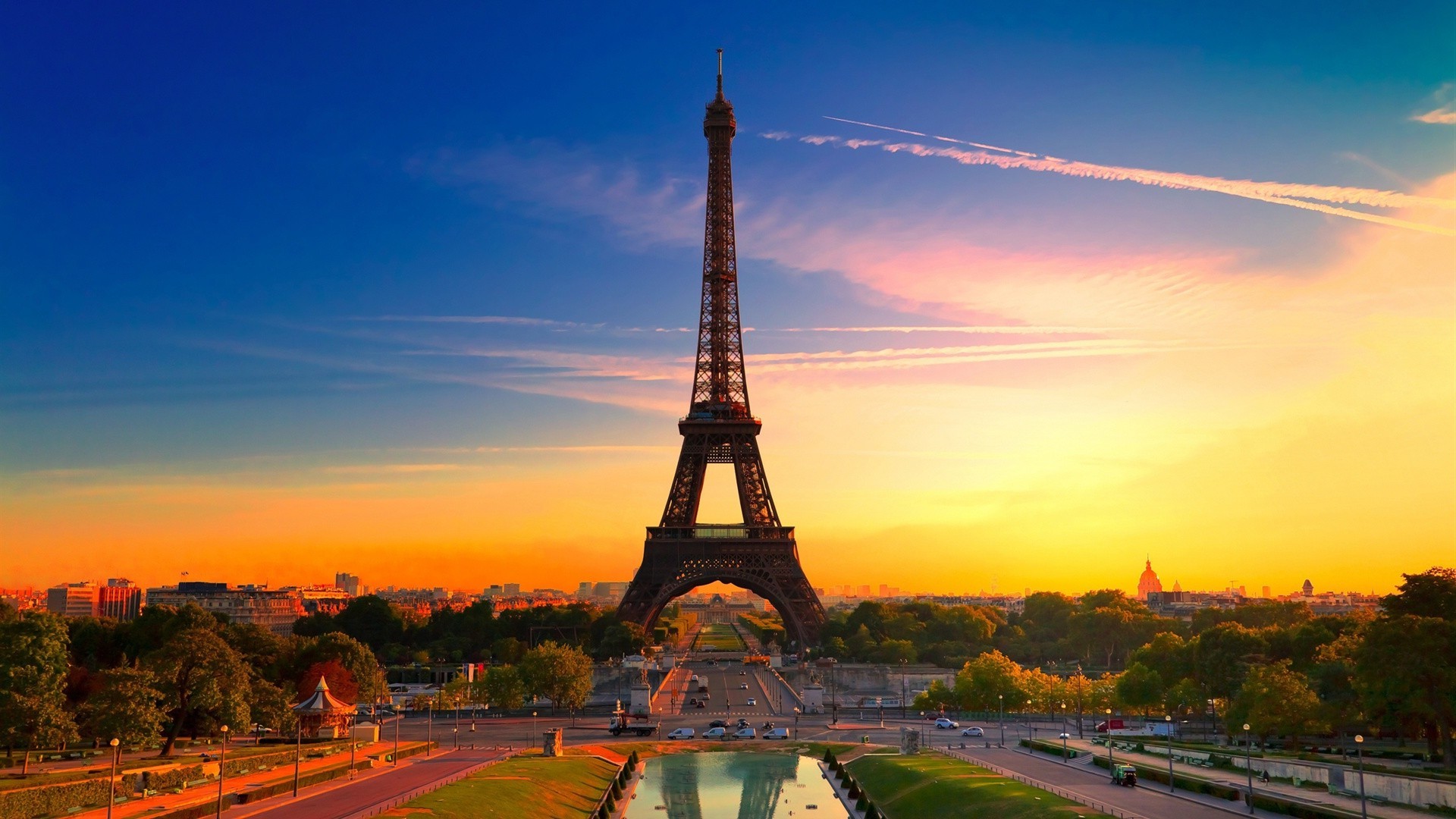 Gökyüzünün arka planına karşı ünlü Eyfel Kulesi