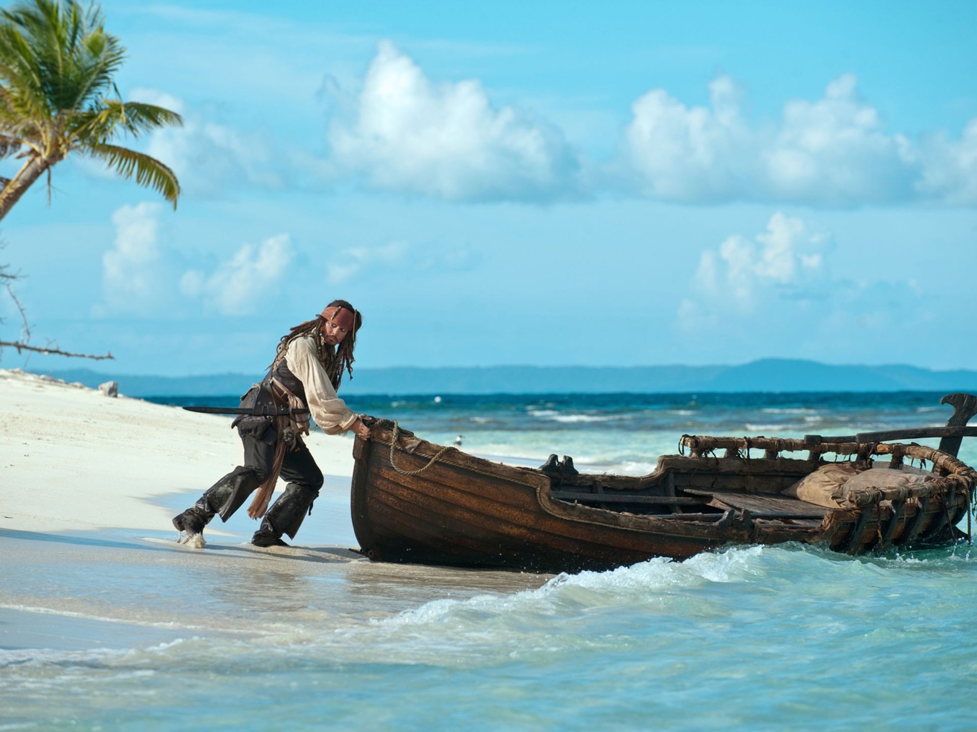 Kaptan Jack Sparrow tekneyi sürüklüyor