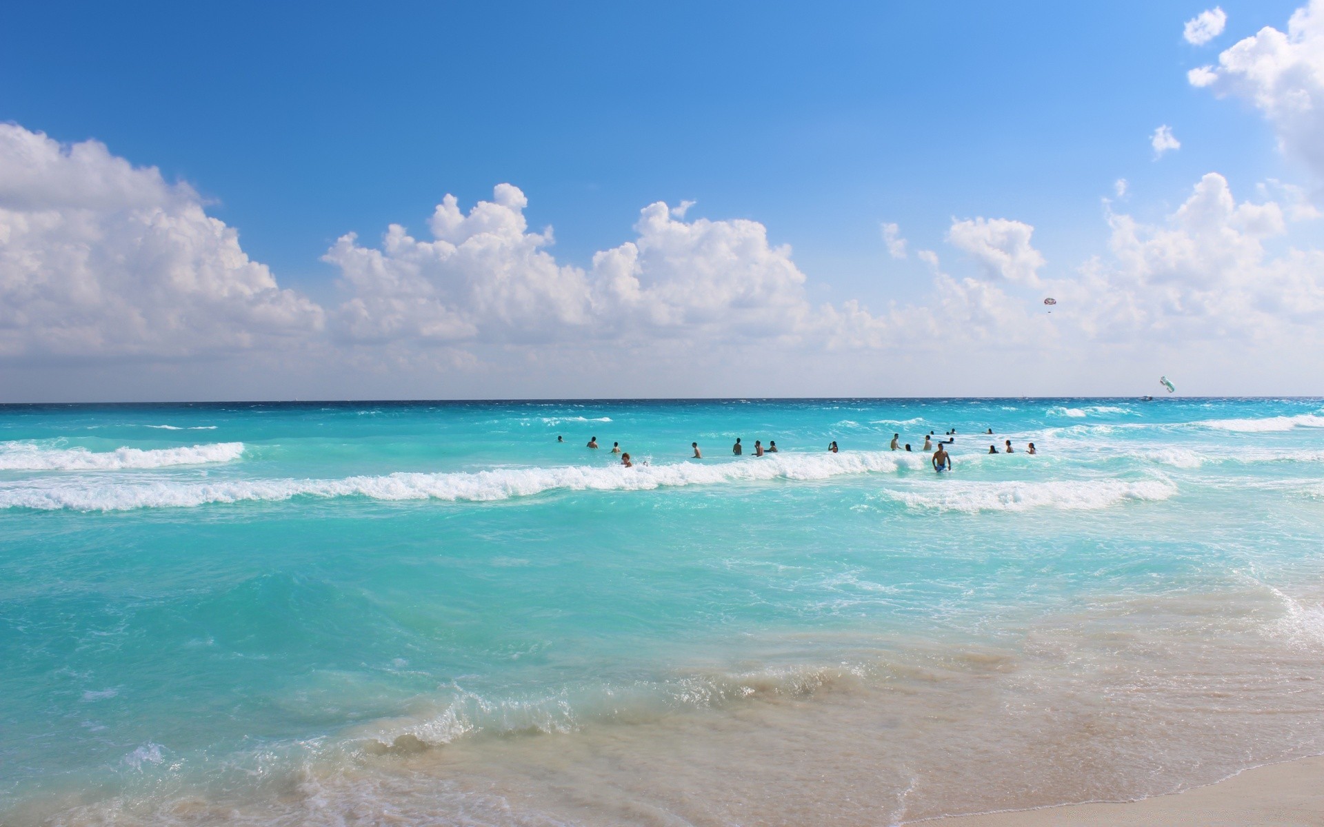 Deniz kenarındaki kumlu plaj açık gökyüzü