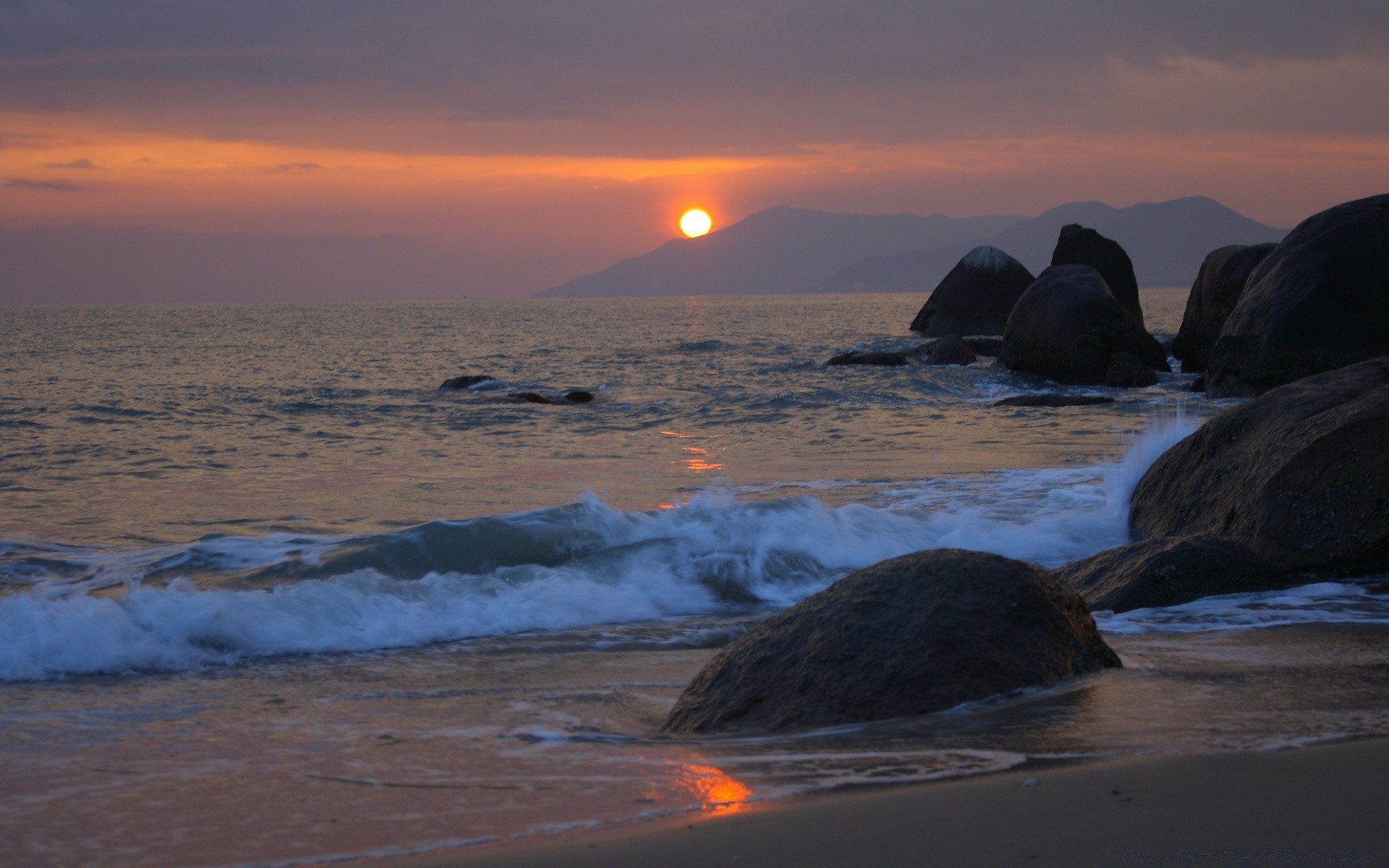 Okyanusun kıyısında sahilde çok güzel bir gün batımı