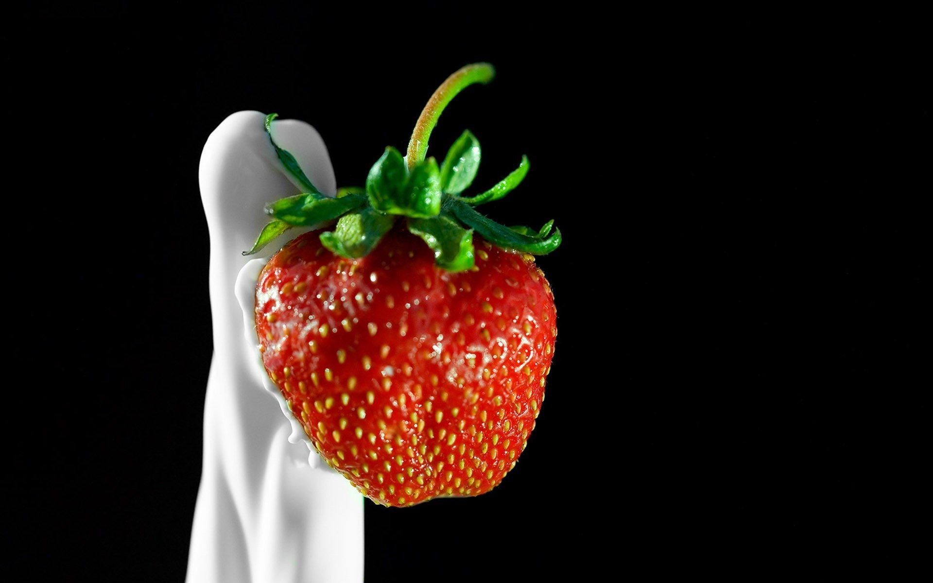 Karanlık bir arka plana karşı HD kalitesinde kremalı çilekler