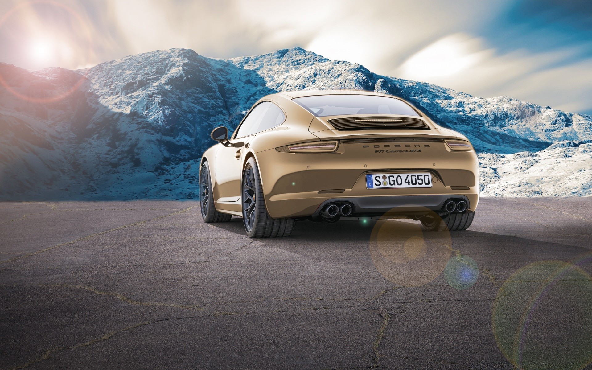 Gün batımının arka planında parlayan farlara sahip bir araba