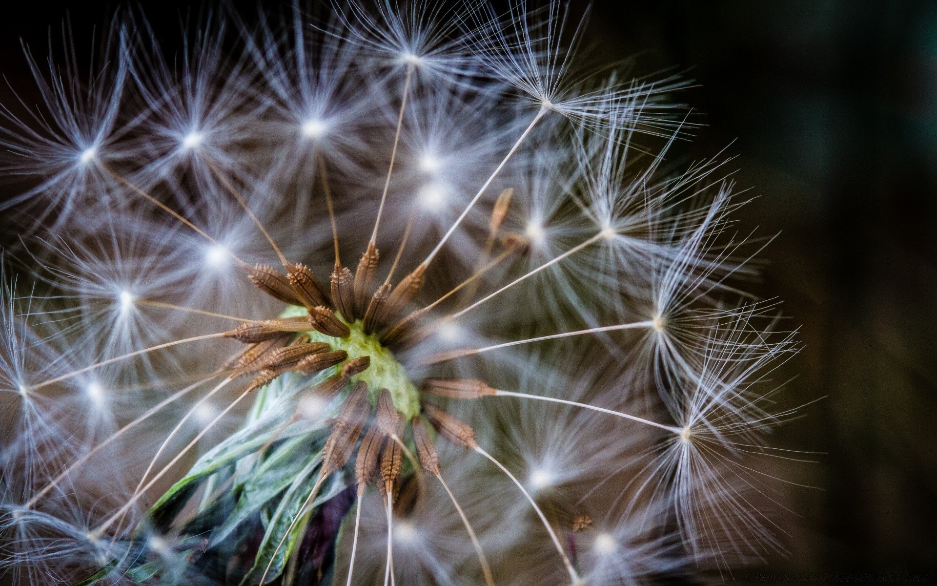 Makro fotoğrafçılığın altında parlak karahindiba tohumları